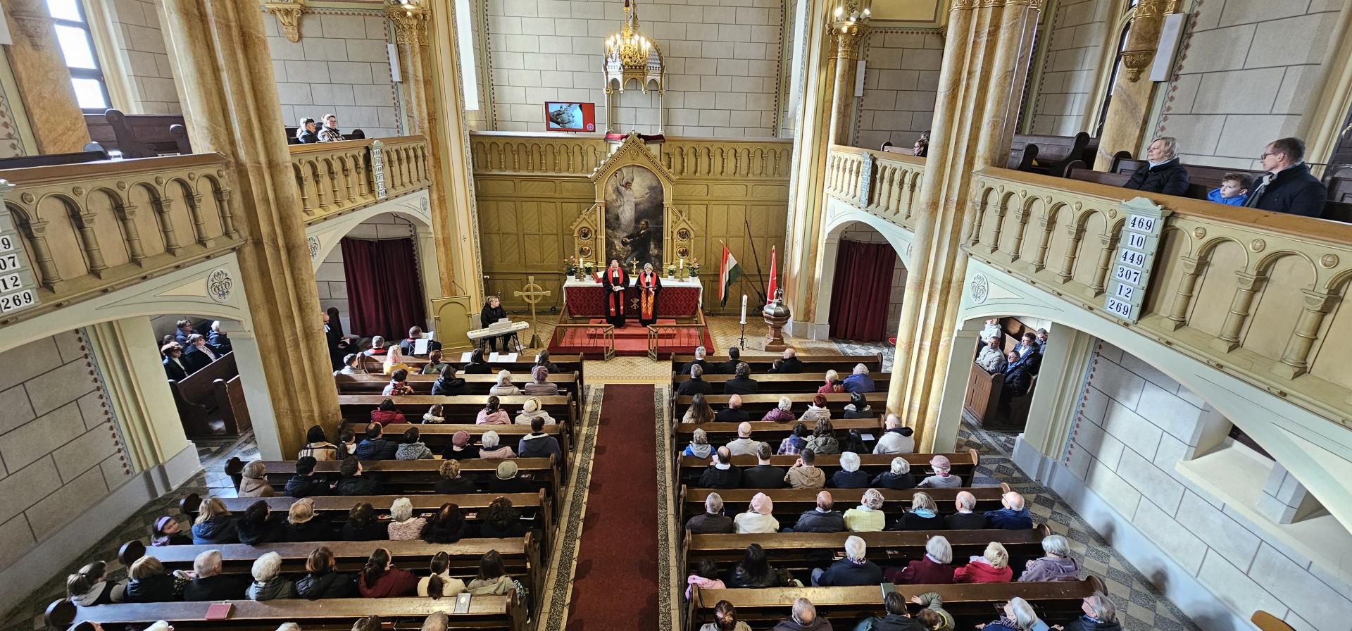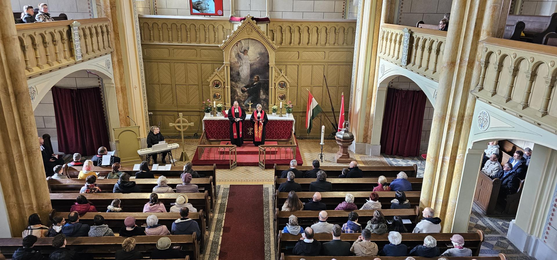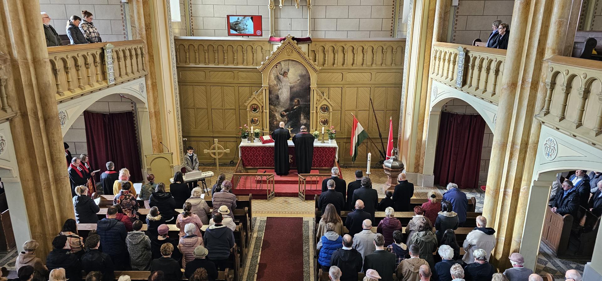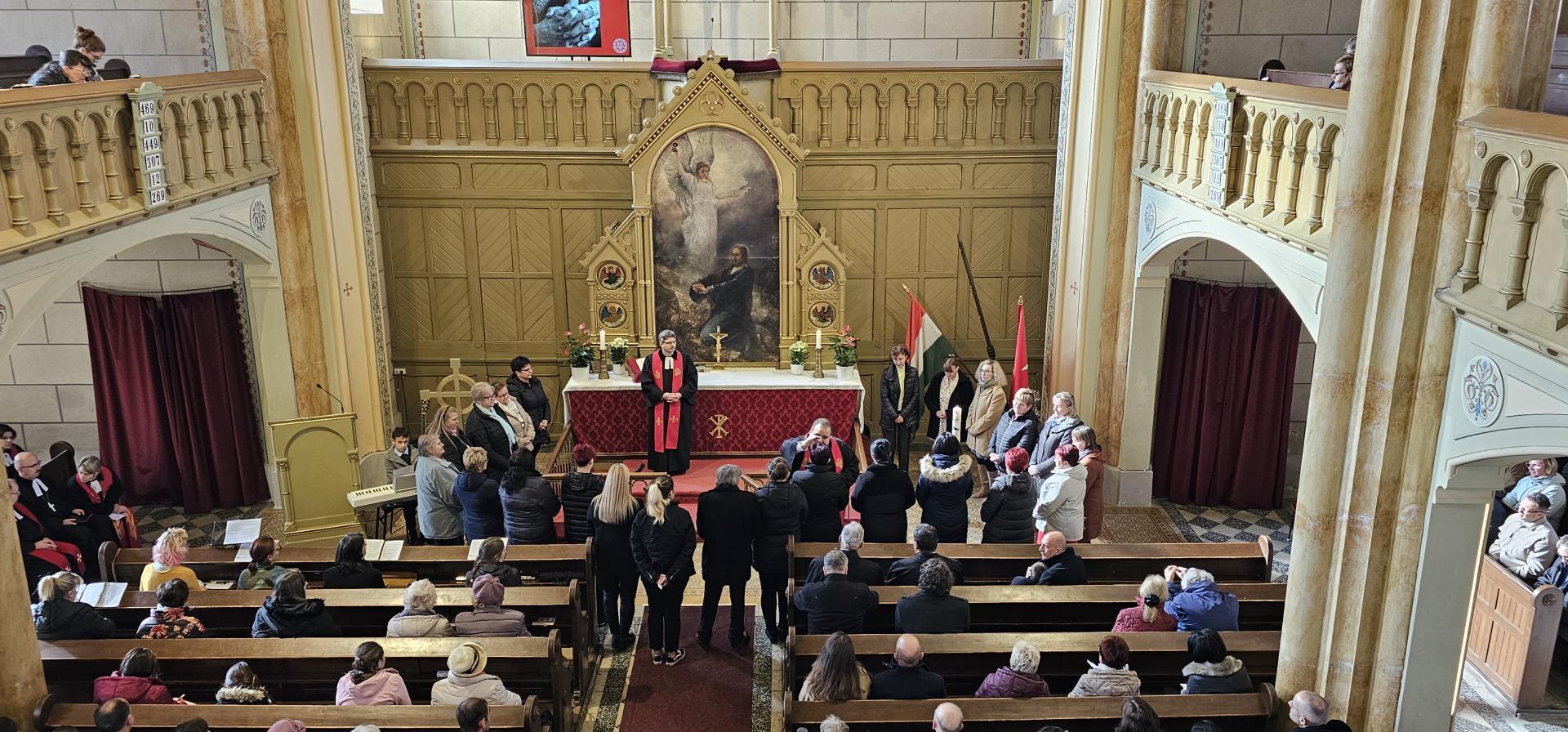Szép számú gyülekezet volt jelen vasárnap az istentiszteleten, a bobai és szombathelyi gyülekezetből, diakóniai intézményekből és egyházunk vezetői köréből is. Kondor Péter püspök úr Máté evangéliuma 5. fejezetének 9. verse alapján hirdette Isten igéjét, "Boldogok, akik békét teremtenek, mert ők Isten fiainak neveztetnek". Az ünnepi istentiszteleten a SZEDIK és a LÁESZ munkatársai áldásban részesültek.
