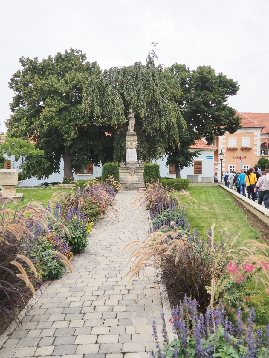 Úticélunk első állomása Frauenkirchen(Boldogasszony), volt. A kisvárosban megnéztük az ősi Mária-kegyhely barokk templomát, amely tele volt a magyar múltra, nagy királyainkra vonatkozó képzőművészeti alkotásokkal. A templom mellett épült spirál alakú Kálvária domb „megmászása” után folytattuk utunkat a Fertő tó nyugati oldalán fekvő Rusztra. Menetközben idegenvezetőnk, Horváthné Lehel Anikó részletesen bemutatta az utunkba eső települések történelmi és kulturális múltját és jelenét.