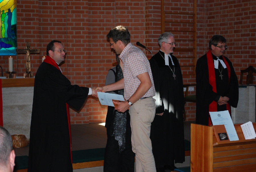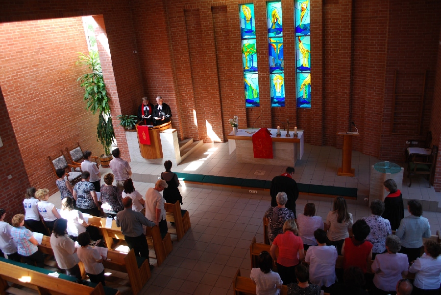 A szerdai napon a delegáció a Sarepta Otthonba látogatott, ahol Sztojanovics András intézményvezető lelkész adott tájékoztatást az intézmény életéről, és a közeljövő nagyszabású fejlesztéseiről. E megbeszélés célja az volt, hogy vendégeink még inkább megismerjék a magyarországi evangélikus diakónia sajátosságait és kihívásait. Délután ünnepi istentiszteletre került sor a Budahegyvidéki Evangélikus Gyülekezet templomában. Az ünnepség részben illeszkedett a Túrmezei év programjaiba, mert a templom padsoraiban főleg azok a munkatársak ültek, akik az elmúlt három év során az " Egy keresztyén házban dolgozom" címet viselő diakonátus képzésen vettek részt. Ezt a képzési modellt szintén a bajor diakónia segítségével honosítottuk meg egyházunkban. Az istentiszteleten Michael Bammessel hirdette Isten szent igéjét a pünkösdi Lélek erejéről, amire a diakóniának elengedhetetlen szüksége van. A liturgiát Fabiny püspök vezette, és intézményeink dolgozói felolvasással és imádsággal szolgáltak. Az istentisztelet keretében, ahogy minden diakóniai istentiszteleten, az úrvacsorai közösséget is élvezhették a gyülekezet tagjai. Az istentisztelet ünnepélyesebbé tette dr. Ecsedi Zsuzsanna egyházzenész szép orgonajátéka és éneke.