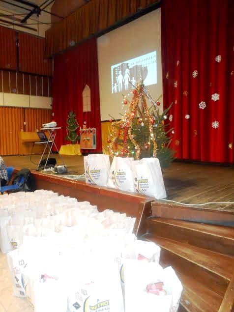 A csomagok kiosztására a Oladi Általános Iskola hagyomágyos karácsonyi műsora után, 2015.12.16.-án került sor az Oladi Művelődési Központ színháztermében.