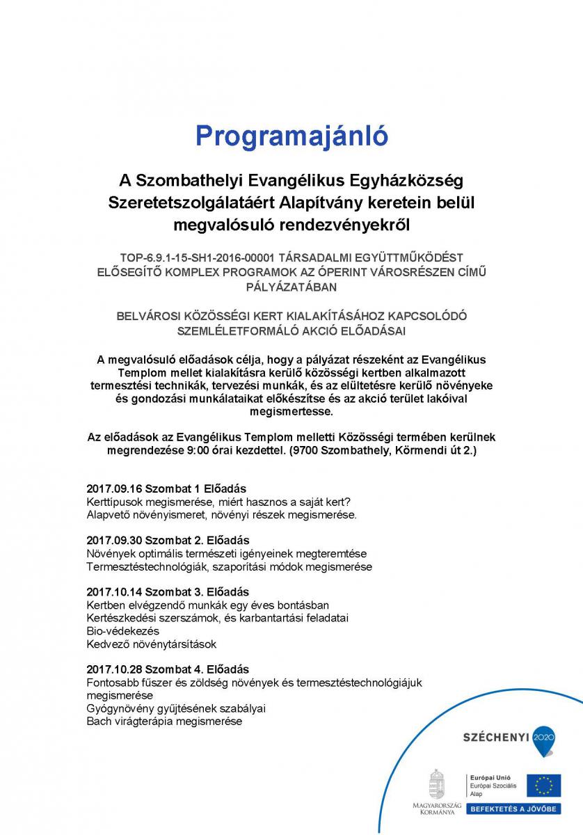 A Szombathelyi Evangélikus Egyházközség Szeretetszolgálatáért Alapítvány egy előadássorozatot indít, melyre szeptembertől egészen decemberig várják az érdeklődőket.