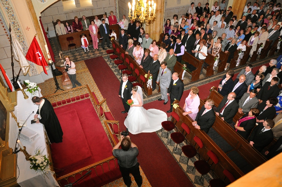 A meghívott vendégeken kívül a gyülekezet tagjai is részt vettek az esküvői Istentiszteleten.