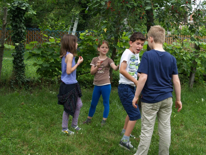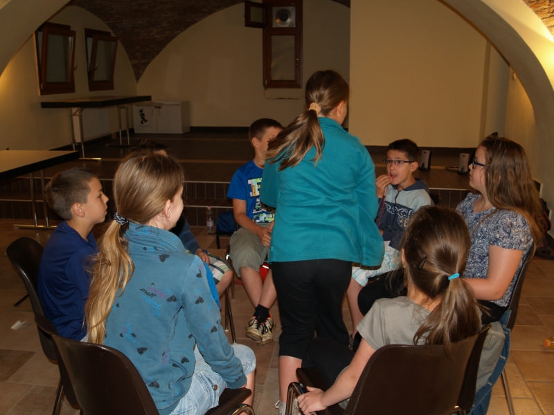 Sok beszélgetéssel, játékkal, tánccal és énekléssel telt a hittan tábor második napjának délelőttje. Ebéd után egy kis sportolás következett, majd a csoportok együtt mentek át Ági néniékhez, ahol megnézhettük, hogyan gondozzák a kertet, játszottunk, tűzet raktunk és sütögettünk is. Ez idő alatt a konfirmandusok az őszi konfirmációi vizsgára készültek.