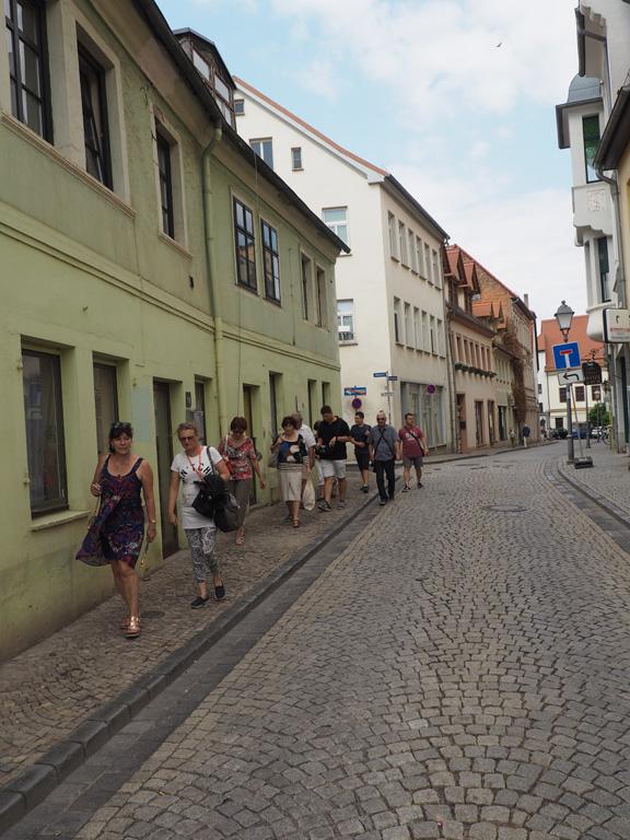 A fárasztó nap után jó és tartalmas esti beszélgetések közben készülhettünk a következő nap élményeire. Csütörtökön Wittenbergben a templomok megtekintését követően, a Luther és Melanchthon ház kiváló kiállításait élvezhettük, és a nagyszerűen felújított és ismét európai jelentőségű látványossággá nemesült Elba menti kisváros utcáit és tereit járhattuk be. Wittenberg a 16. századi Európa egyik legjelentősebb szellemi központjává emelkedett a reformátori tevékenység, az egyetemi és kulturális szerepe miatt. Tisztelettel adóztunk Stöckel, Dévai Bíró, Honterus, vagyis Hungária és Pannónia nemes peregrinusai előtt, akik Luther és Melanchthon katedrája alatt szívták magukba a reformáció tanait és lelkiségét, majd hazatérve a magyarországi reformáció nagyjai lettek. Vas megyeiként különös áhítattal álltunk meg a vártemplom közvetlen közelében elhelyezett Sylvester János emléktábla alatt.