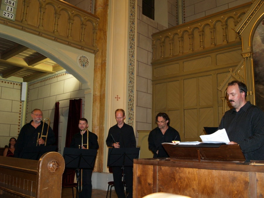 Velencéből terjed el szerte Európában az a többkórusos technika, mely kihasználva a templom adottságait, a hangszeregyütteseket a tér más-más pontjain helyezi el. A művészek zinken, trombitákon, harsonákon, orgonán mutattak be reneszánsz és barokk muzsikákat.