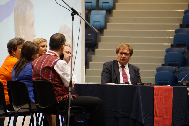 A nyitóáhítat után Prőhle Gergely köszöntötte a megjelent prebitereket, majd Jeszenszky Géza tartott előadást a reformációról a közeledő 500 éves évforduló kapcsán. Intézmények a gyülekezetekért címmel hallhattak beszélgetést a résztvevők, melyben két fő terület az oktatás és a diakónia kapott fő szerepet. A beszélgetésben részt vett gyülekezetünk lelkésze Gergersen-Labossa György is. Majd Fabiny Tamás imádsága zárta a délelőtti programot.