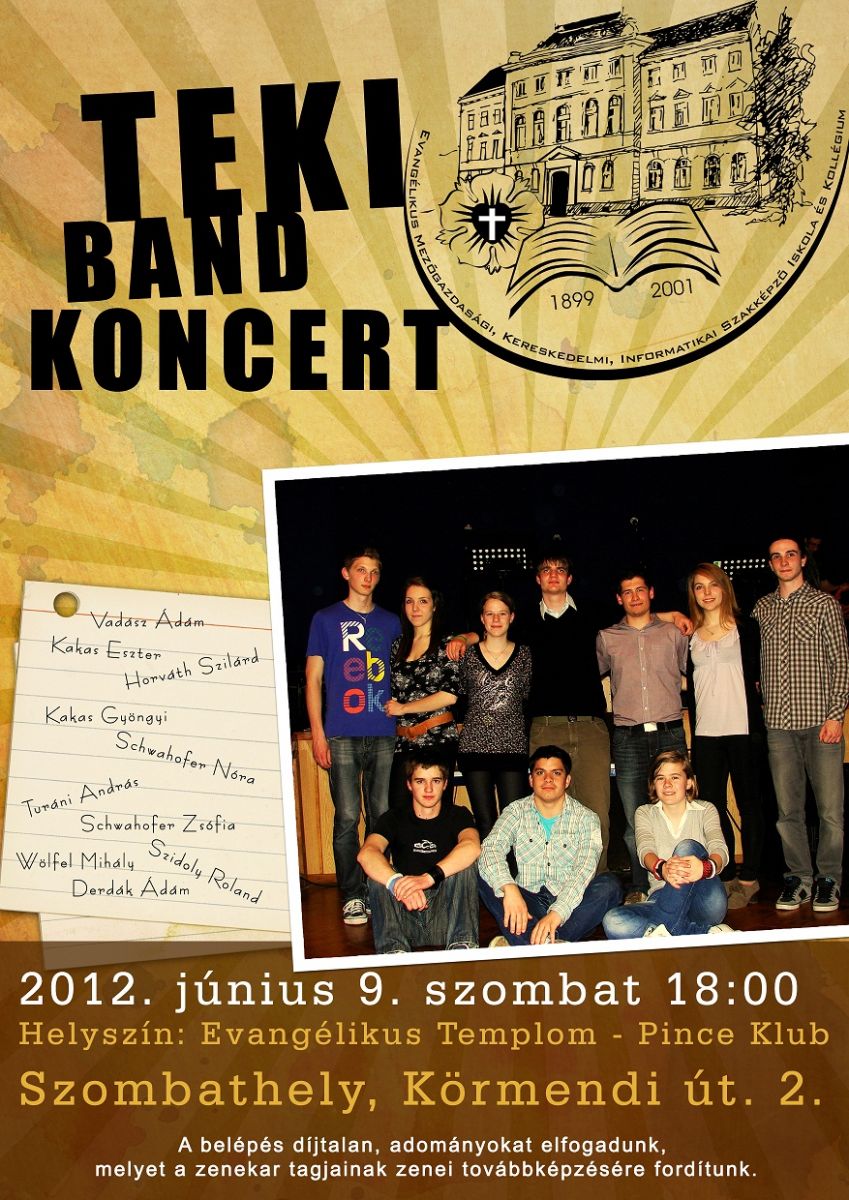 Ifjúsági nap keretében látogat el gyülekezetünkbe a TEKI Band. A gyülekezetünkben működő TenSing csoporttal közösen vesznek részt június 9-én egy közös délutánon, amelyre nagy szeretettel várjuk a gyülekezetünkben élő többi fiatalt is, azokat, akik talán még nem tagjai ifjúságunknak. A közös nap 18 órakor egy koncerttel zárul!