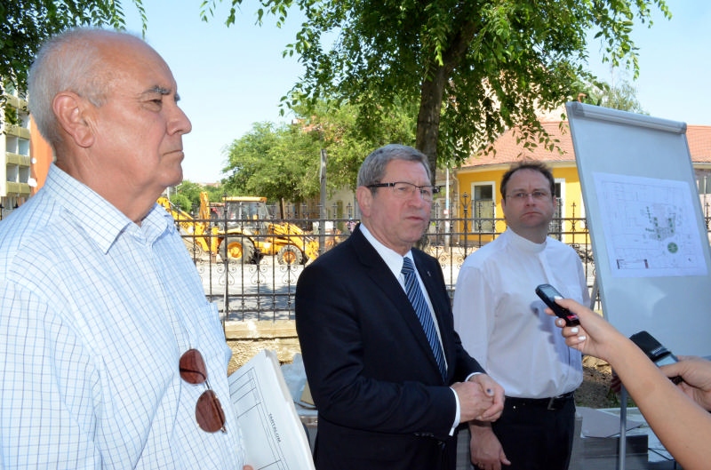 Megkezdődött a körforgalom kialakítása a Körmendi-Óperint-Dózsa-Kálvária utca kereszteződésében. Az új forgalmi rend mellett egy tér is épül a templom előtt. Erről tájékozódhattak a szombathelyi sajtó képviselői.