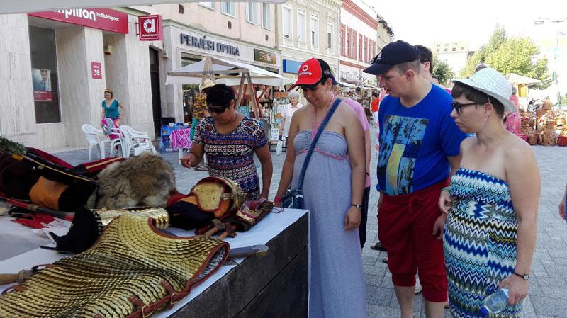 Intézetünk gyermekei is kedvet kaptak egy kis városnézésre. A Fő téren lépésről-lépésre haladva csodáltuk meg a saját készítésű árukat, zenészeket, óriás biciklin száguldókat és ördögbot művészeket. A nagy meleg ellenére a gyerekek szívesen sétálgattak a lezárt utcákon. Ha az illatok nem húztak volna minket haza ebédidőre, talán még estig is ott maradtunk volna.