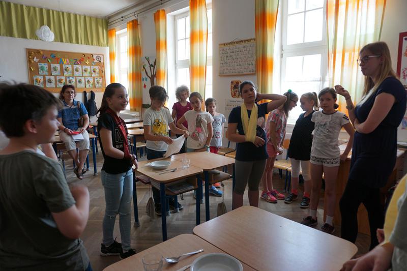 Ezalatt az alsósok különböző állomásokon jártak, ahol egy-egy bibliai történet alapján tapasztalhatták meg, milyen is az, amikor egy érzékszerv, vagy testrész nélkül kell boldogulnia az embereknek a mindennapokban. Milyen az élet, ha valaki nem hall, nem lát, törött a keze, nem tud lábra állni... emellett az is kipróbálhatták, hogyan lehet segíteni társaiknak.