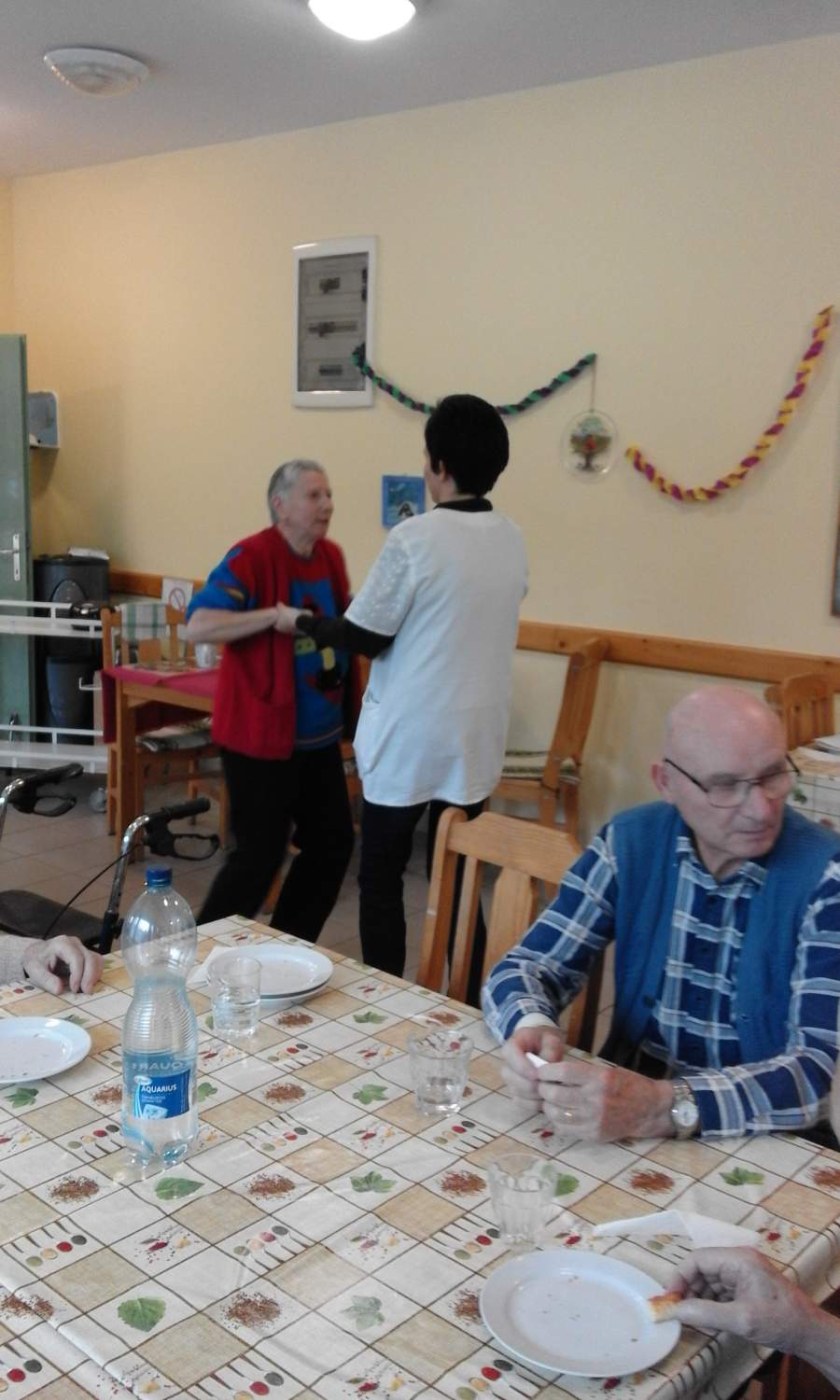 Az összejövetelen az időseken kívül részt vett vendégként Ambrus Tivadarné önkéntesünk, aki a kezdetektől fogva felolvasást tart az otthonban. A vidám alkalmon a régi kedvenc dalok közül válogattak az ápolók. Volt, aki még táncra is perdült.