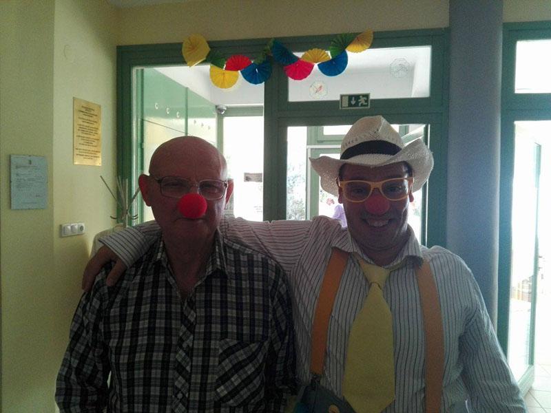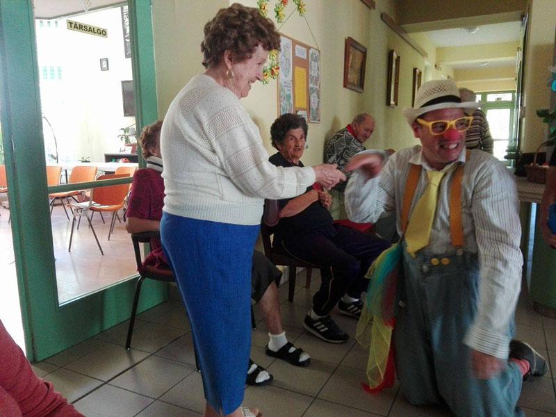 Vass Szilárd, a Dr. Bohóc Mosolyszolgálat vezetője volt a fő kolompos, sorra kérte fel a hölgyeket, menjenek hozzá feleségül. Az idősek partnerek voltak a bohóckodásban, nagyon vidám órát töltöttek együtt az alkalmi orvosokkal, akik énekeltek, szappanbuborékot fújtak, lufit hajtogattak és labdáztak is a lakókkal.