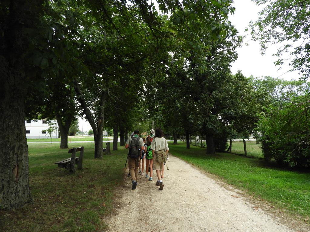 Bőséges reggeli elfogyasztása és a túra felszerelés összekészítése után elindultunk, hogy felfedezzük a környéket. Erdőn-mezőn keresztül, Rábatöttős érintésével megérkeztünk fő úticélunkhoz Csempeszkopácsra. A Szent Mihály Árpád-kori templom szépségével és történetével ismerkedtünk meg. Szabó Domonkos cserkésztestvérünk harmóniumon kísérte ifjúsági énekeinket. Tovább állva megnéztük a vasúttörténeti emlékházat és a Pungor Zoltán helytörténeti múzeumot. Ezen nevezetességeket Cziráki István lokálpatrióta vezetésével tekintettük meg. Ebéd utáni csendespihenőnket az érkező viharfelhők szakították meg. A táborba frissítő záporral együtt érkeztünk. A teljesített távunk összesen 11 km-re tehető. Gadányi Péter „Bendegúz” cserkésztestvérünknek a mezítlábas túra teljesítése sem okozott gondot. A zápor nem hátráltatta a körletépítési munkákat. A mezei nyúl őrs körleti hintával is előrukkolt. Süle Beatrix (Trixi) érdeme a fantasztikus sajtos tejfölös lángos vacsora volt. Persze a karfiolleves így csak az aznapi toplista 2. helyére csúszott. A tábortüzet Kúti-Vincze Dániel állította össze.