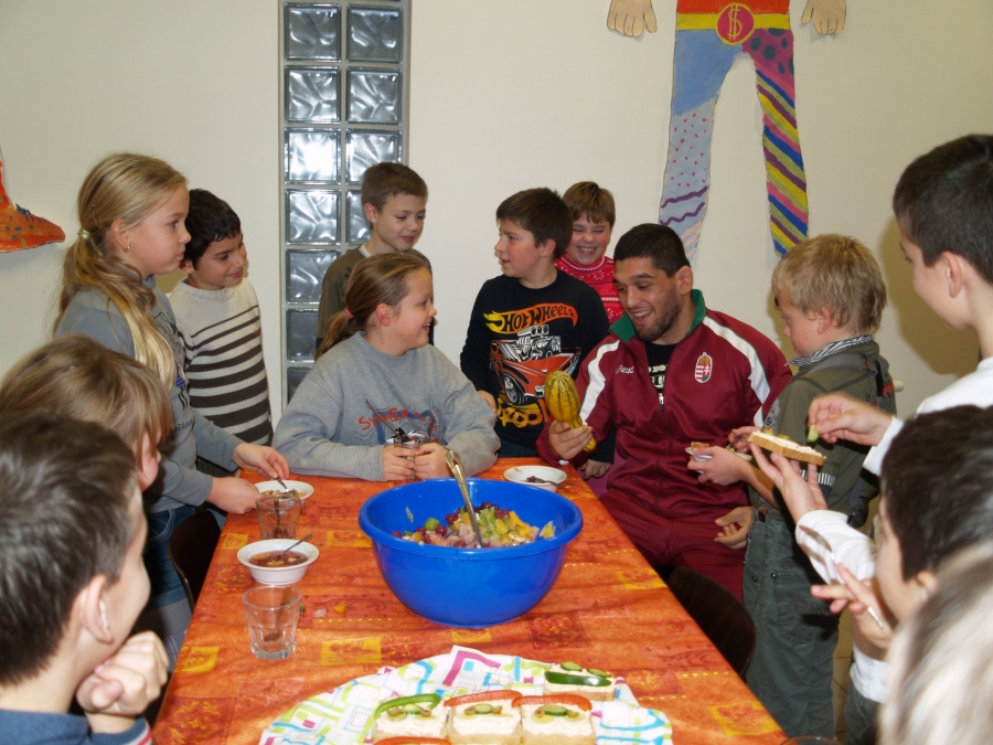 Két szombathelyi birkózó, Hatos Gábor és Ligeti Richárd is vendége volt a mai egészségnapnak. Ők a rendszeres testmozgás fontosságát hangsúlyozták és látványos bemutatót tartottak a gyerekeknek. Egy másik helyszínen a gyógynövények hatásaival, felhasználásával ismerkedhettek meg a diákok. De szó esett arról is, hogy melyik ételben, gyümölcsben, zöldésgben, milyen vitaminok vannak és ezek miért fontosak a szervezetnek.