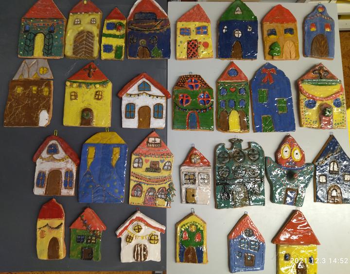 Visszatekintünk az adventi időszakra - Iskolánk környezet- és kézműveskultúra tanszakos tanulói adventi házsort készítettek mázazott agyag technikával.