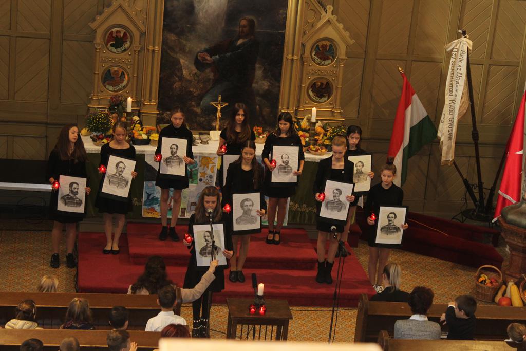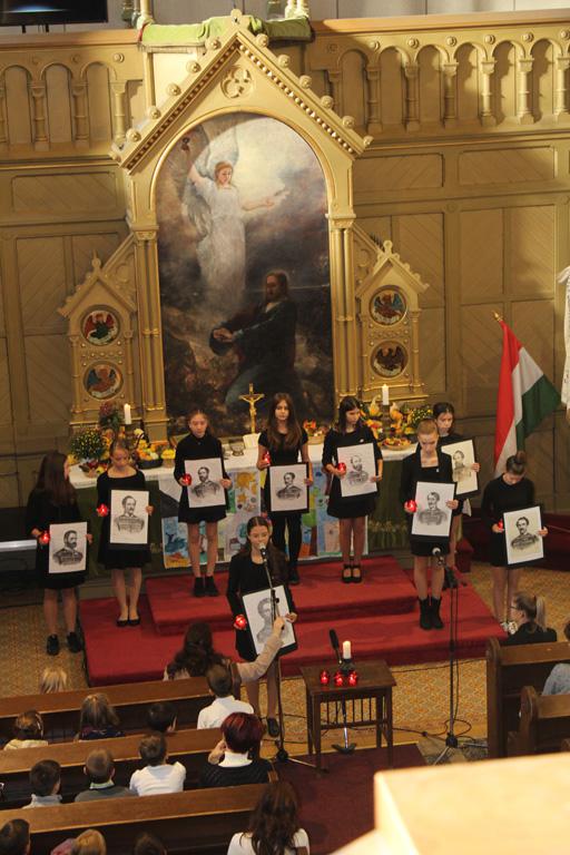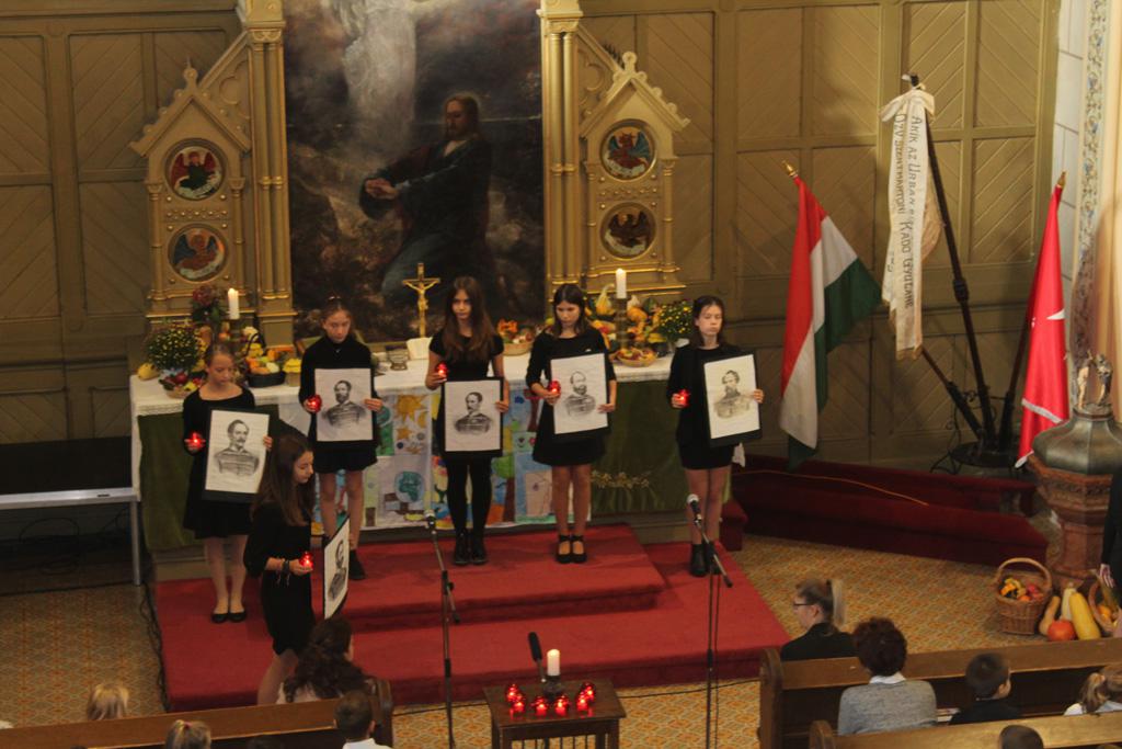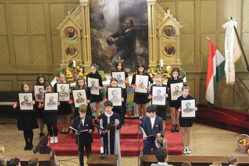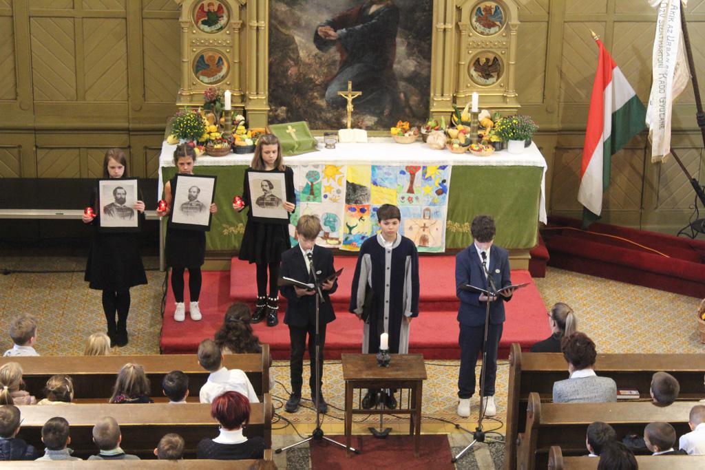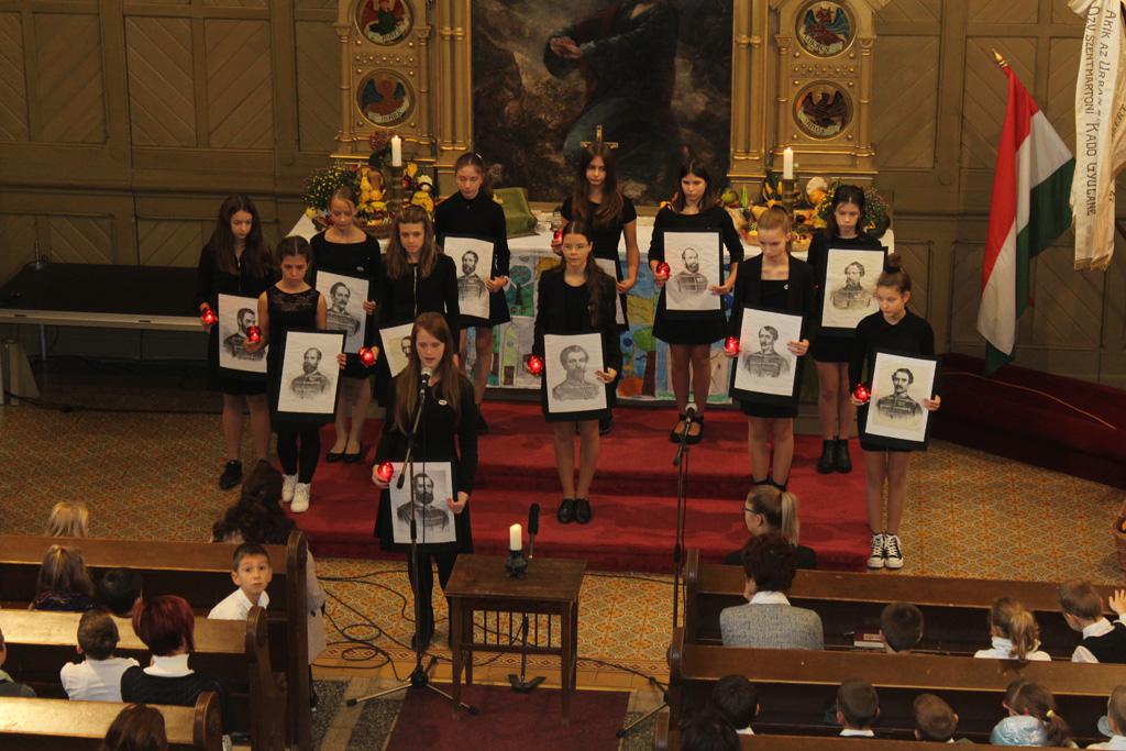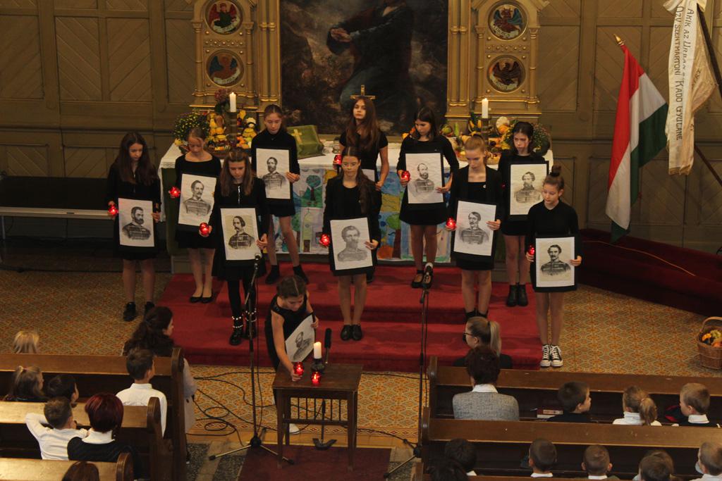 A Reményik Sándor Evangélikus Óvoda, Általános Iskola és AMI tanulói a hétfői áhítat keretében emlékeztek a 13 aradi vértanúra, akik életüket adták Magyarország függetlenségéért. A 7. évfolyam diákjai által előadott műsor - az azóta gyásznappá nyilvánított - október 6-ai eseményeket idézte fel.