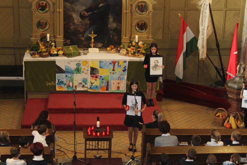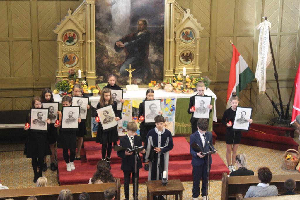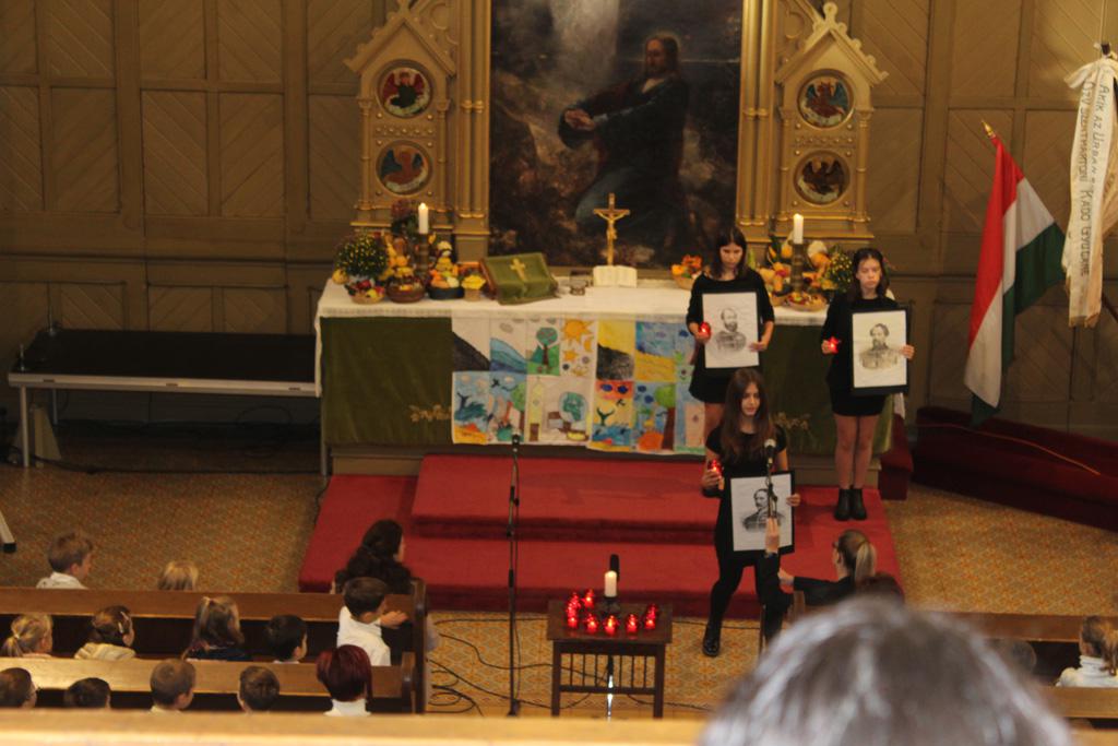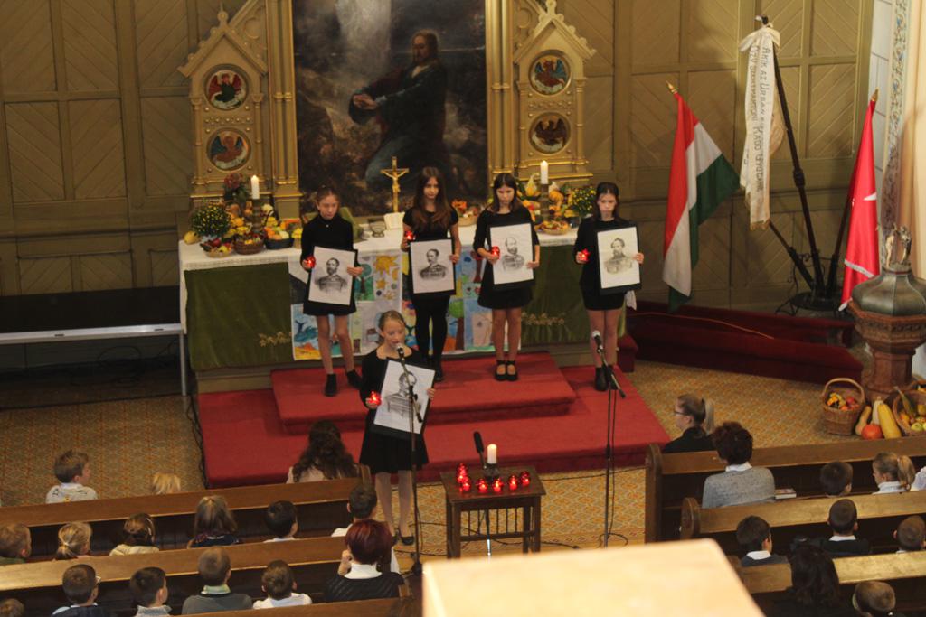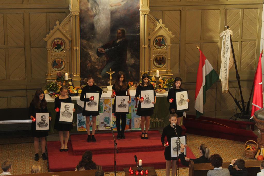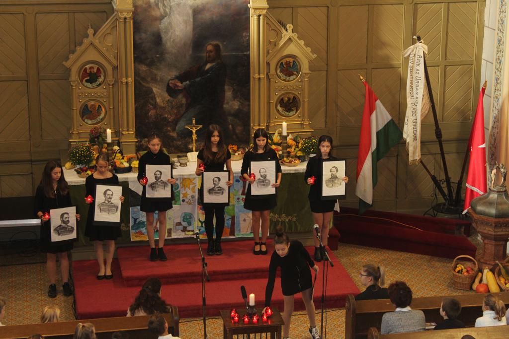 A Reményik Sándor Evangélikus Óvoda, Általános Iskola és AMI tanulói a hétfői áhítat keretében emlékeztek a 13 aradi vértanúra, akik életüket adták Magyarország függetlenségéért. A 7. évfolyam diákjai által előadott műsor - az azóta gyásznappá nyilvánított - október 6-ai eseményeket idézte fel.
