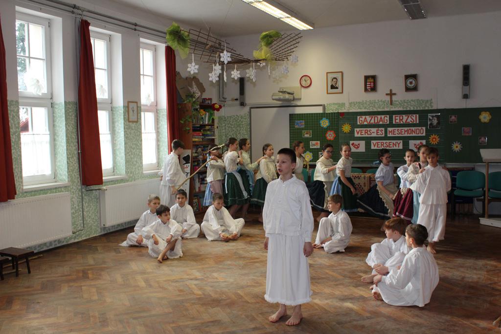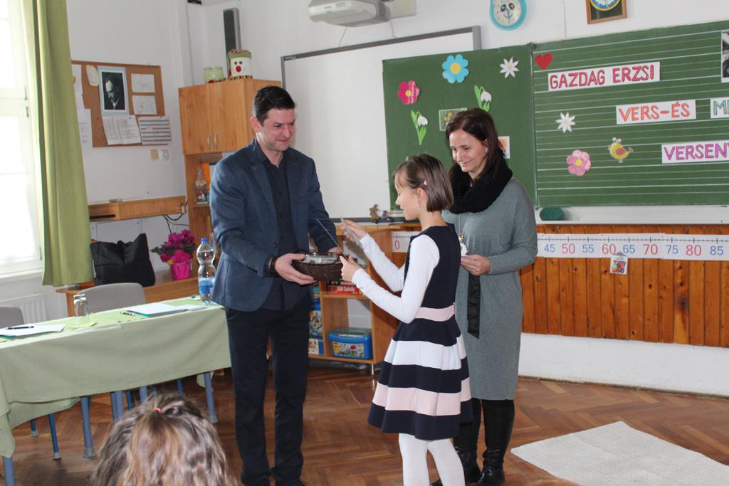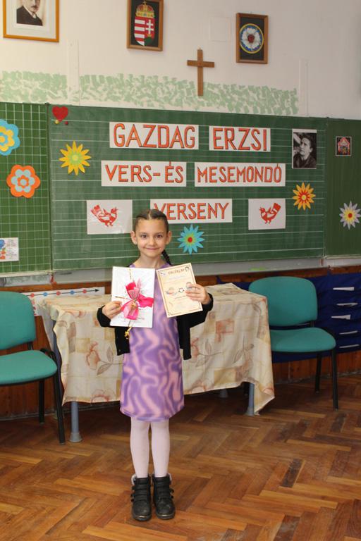 Kardos Tamás fotóművész kiállításának megnyitójával kezdődött el a program. A tárlattal bemutatkozó fotós 74 országban járt élete során, az útjai során készült fotóit hozta el az iskolába. A kiállítás megtekinthető február 22-ig az első emeleten. Az idei évben is nagyon magas színvonalú előadásokkal készültek a kis előadóművészek. A vers- és mesemondó versenyre Vas vármegyei és szombathelyi iskolák diákjai jelentkeztek, de akadtak versenyzők az intézmény felvidéki testvériskolájából is. Három kategóriában lehetett nevezni: óvoda, 1-2. osztály, valamint 3-4. osztály. 36 gyermek méretette magát ezen a napon. A versenyt Sátory Károly igazgató úr nyitotta meg, aki kiemelte, hogy a nyertes gyermek felvételt nyer az iskolába. A rendezvénnyel Balogh József költőre, az iskola egykori tanárára is emlékezünk. Meghívást kapott Balogh József özvegye, aki elmondta: Gazdag Erzsi versein generációk nőttek fel, sorai mindenki számára ismerősen csengenek. A zsűri minden korcsoportból az első három helyezettet díjazta.