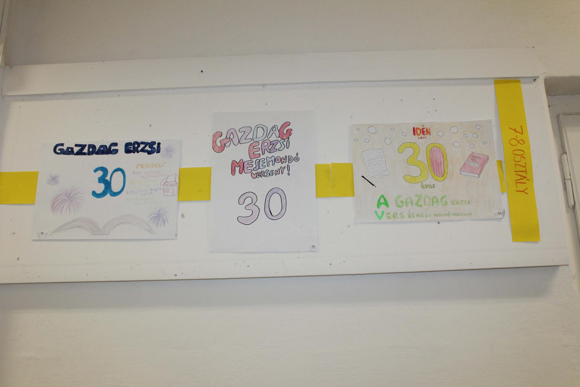 A harmincéves jubileum alkalmából rajzpályázattal is színesítettük a programot. Az alsó tagozatos diákok verseket illusztráltak, míg a felsősök plakátokat készítettek. A pályaművekből iskolánk aulájában kiállítás nyílt, ahol a közönség is szavazhatott a legjobbakra.