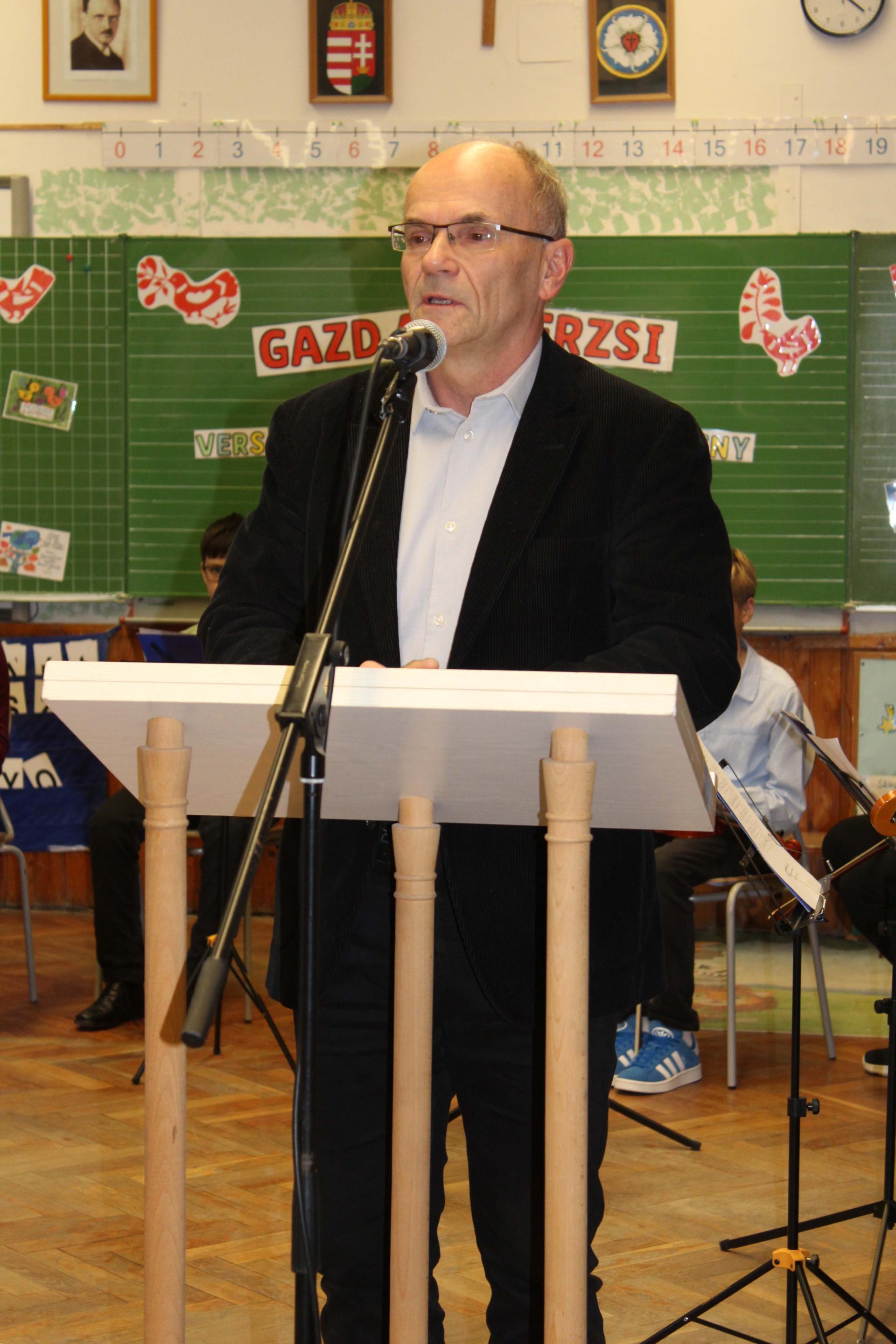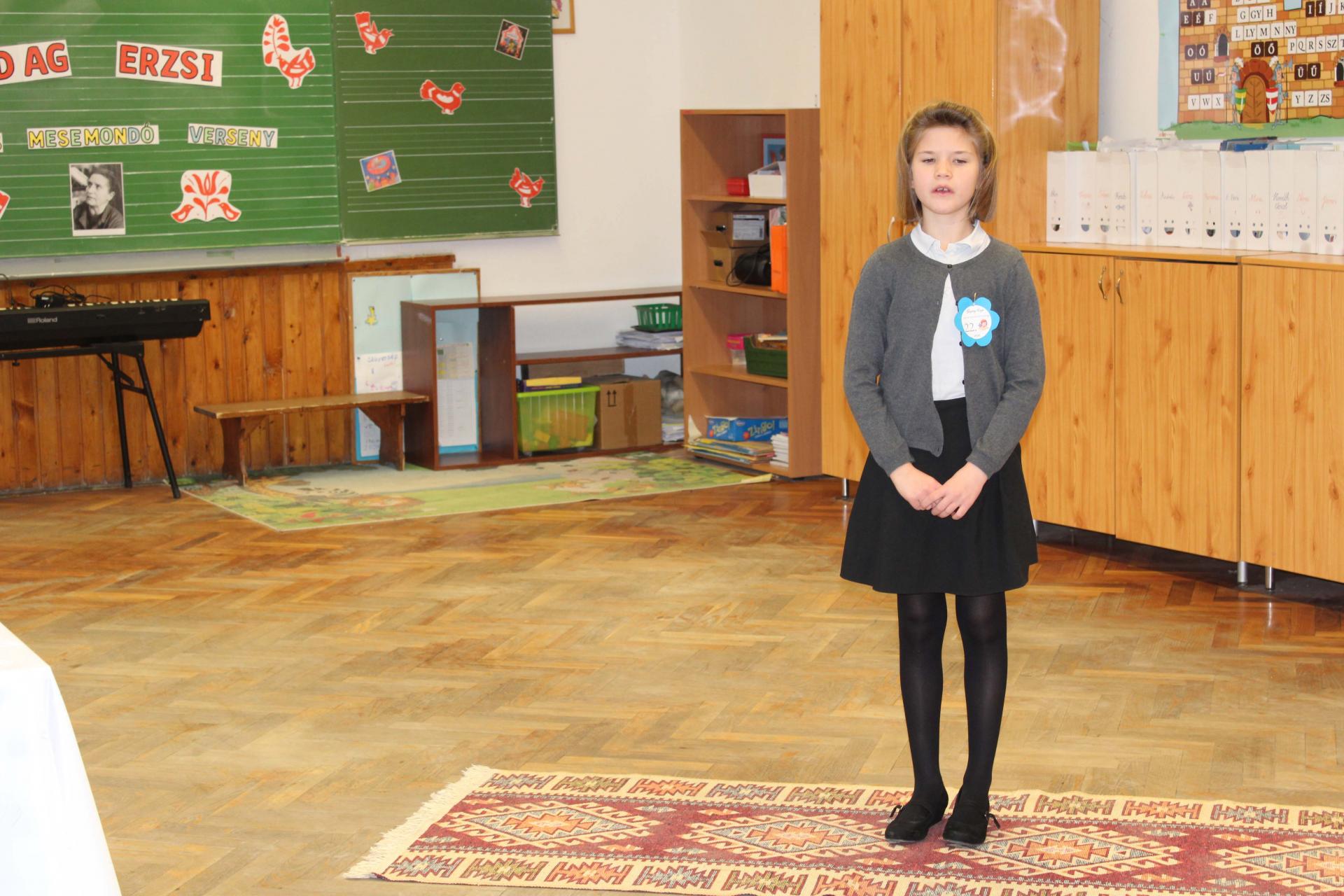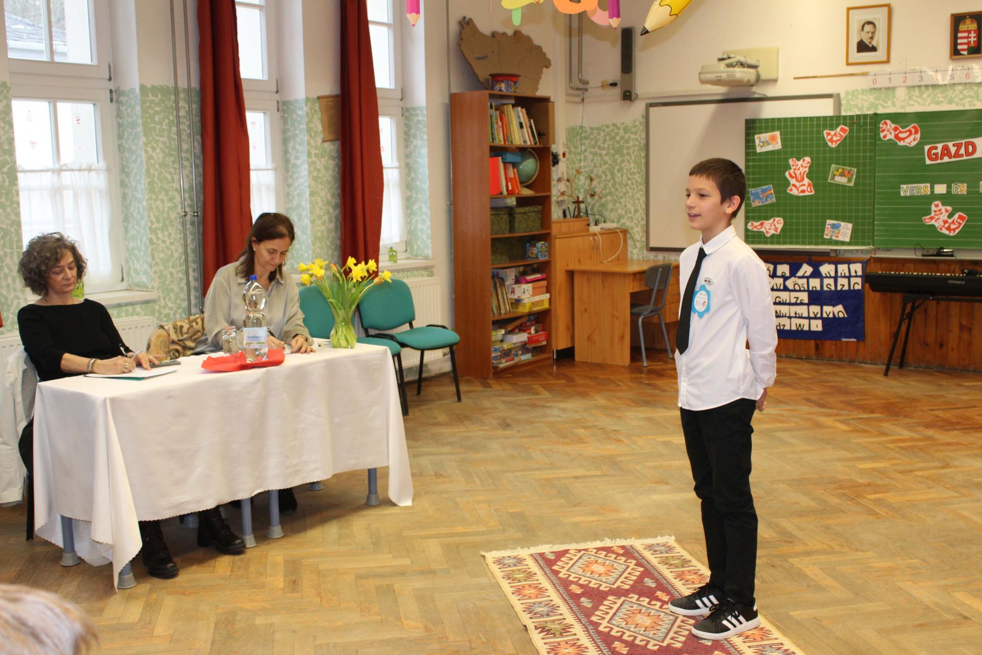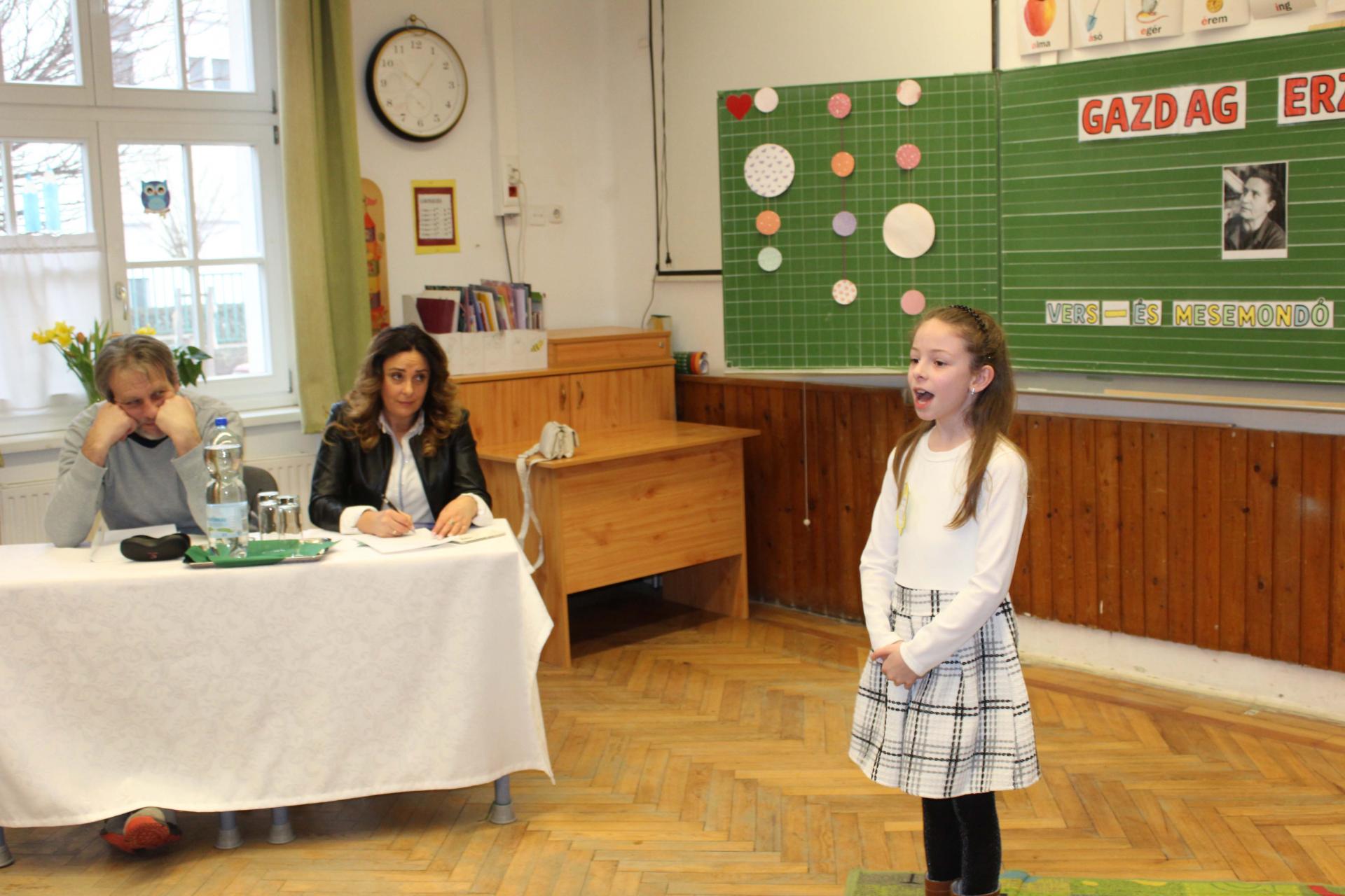 A versenyzők két szabadon választott művel készültek, amelyek közül az egyiknek Gazdag Erzsi alkotásának kellett lennie. A szavalatokat rangos zsűri értékelte: az óvodásokat Szabó Imréné Edit drámapedagógus, Vörös Ágnes, iskolánk nyugalmazott pedagógusa és Csákvári Gyöngyi pedagógus hallgatta meg. Az 1–2. osztályosok produkcióit Bálint Éva és Horváth Ákos, a Weöres Sándor Színház színművészei pontozták, míg a 3–4. osztályos versenyzőket Kinezics Helga, a Nagy Lajos Gimnázium magyar szakos tanára, valamint Németh Gyöngyi, a Weöres Sándor Színház színházpedagógusa értékelte.