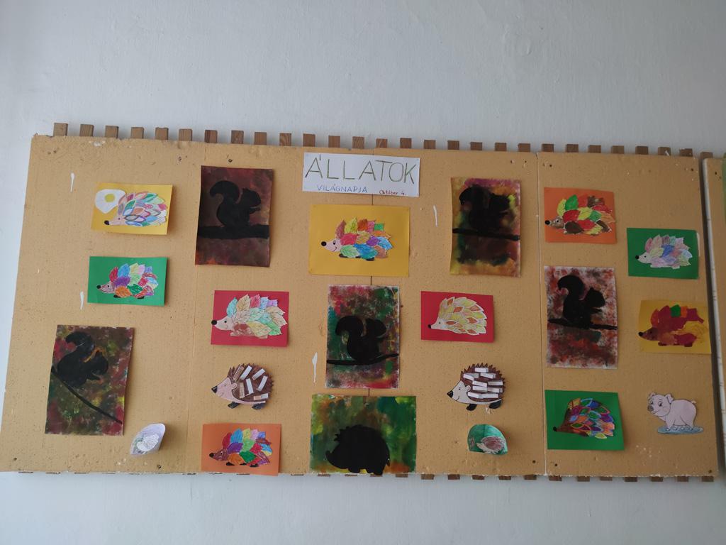 Október 4-én az Állatok Világnapjáról tanórákon és szakköri foglalkozáson emlékeztünk meg. Erre az alkalomra az öko-faliújság és a kiállítás elkészítése az első osztályosok feladata volt.