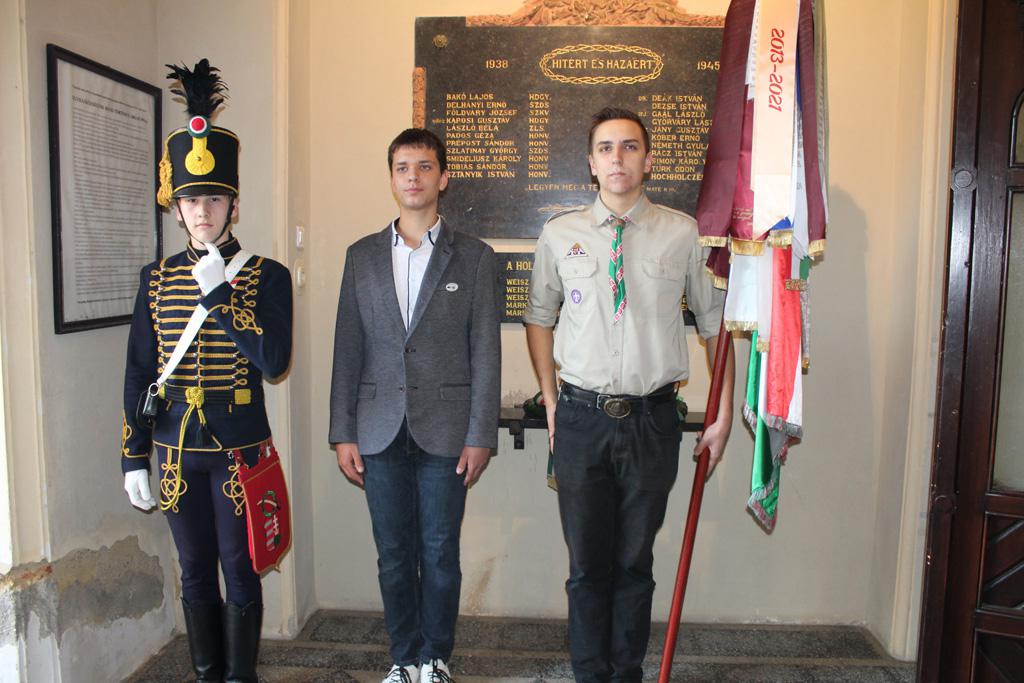 Elfogadta meghívásunkat Tóth Bence, Szabó Domonkos és Treplán Márk volt tanítványunk. Domonkost és Márkot a mai ünnepségre iskolánk zászlóvivőjének kértük fel. Bence pedig, mint már olyan sokszor az iskolai ünnepség hangosításában segít nekünk.