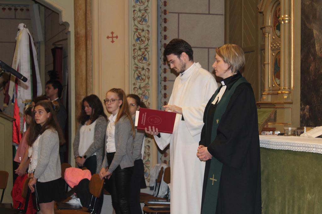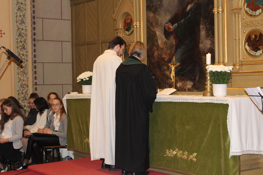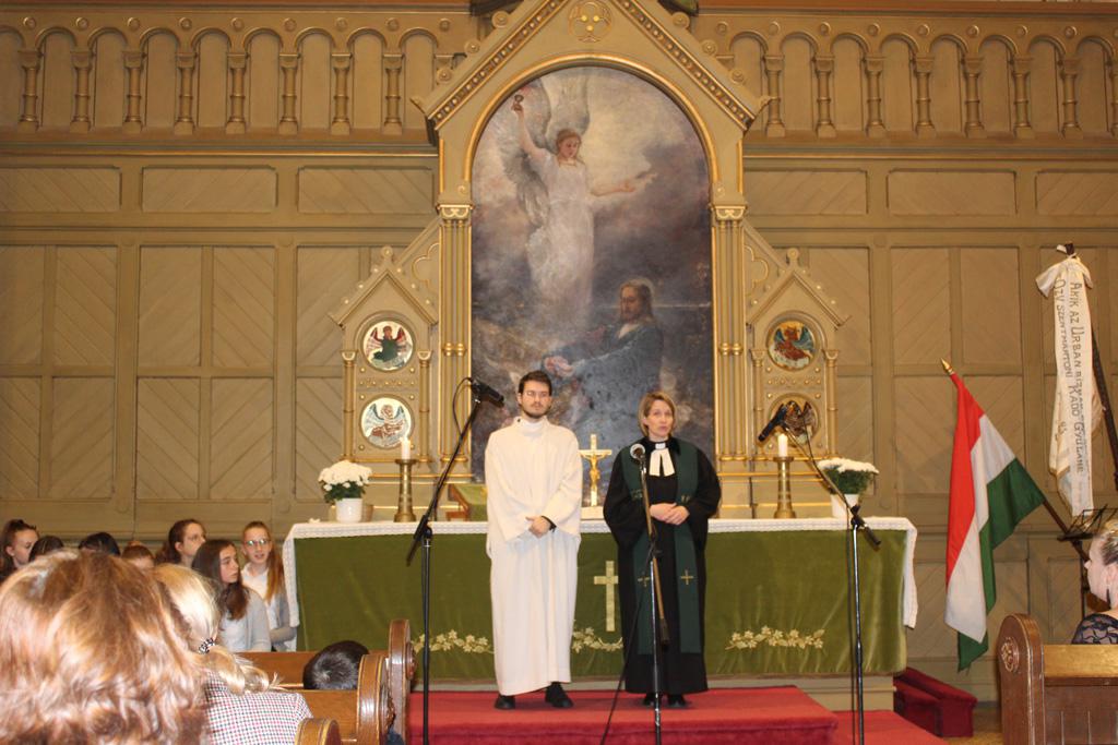 Végzett diákjaink közül hárman, Papp Ildikó, Tiborcz Dániel és Gregersen-Labossa Mátyás az Evangélikus Hittudományi Egyetem teológus hallgatói. Közülük ketten is részt vettek ünnepségünkön, Mátyás a liturgiában szolgált, míg Dániel Reményik Sándor: Békesség Istenről című versét szavalta.