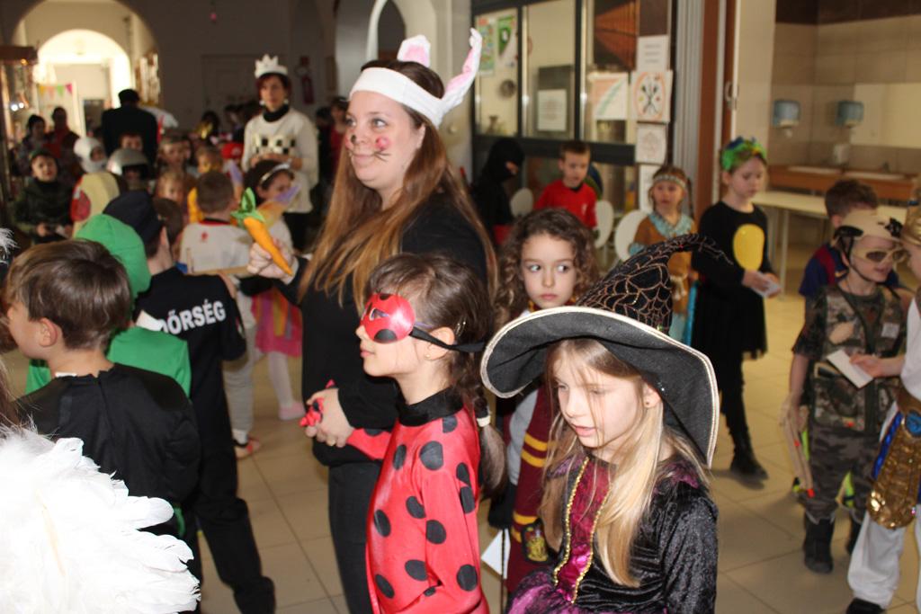 Az 1. és 2. osztályosok hétfőn, a 3. 4. osztályosok kedden a mulatság előtt felvonuláson is részt vettek. Az egyedi jelmezeket a zsűri díjazta. Három év kihagyás után végre megint megtarthattuk a farsangi suli discot a felsős évfolyamos tanulóinknak. Az est az osztályok jelmezes felvonulásával kezdődött. Az osztályok rövid, ötletesnél ötletesebb produkciókkal készültek. Ezután következett a disco, melynek fergeteges volt a hangulata. Kicsi és nagy együtt táncolt, énekelte a slágereket.