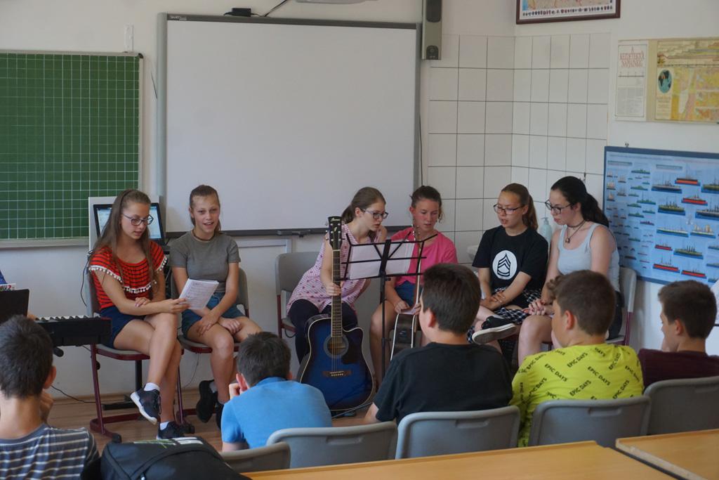 Most már hagyományt teremtett saját osztályán belül a 7.a, hogy tanév végén egy minikoncerttel köszönik meg tanáraiknak az éves munkájukat.