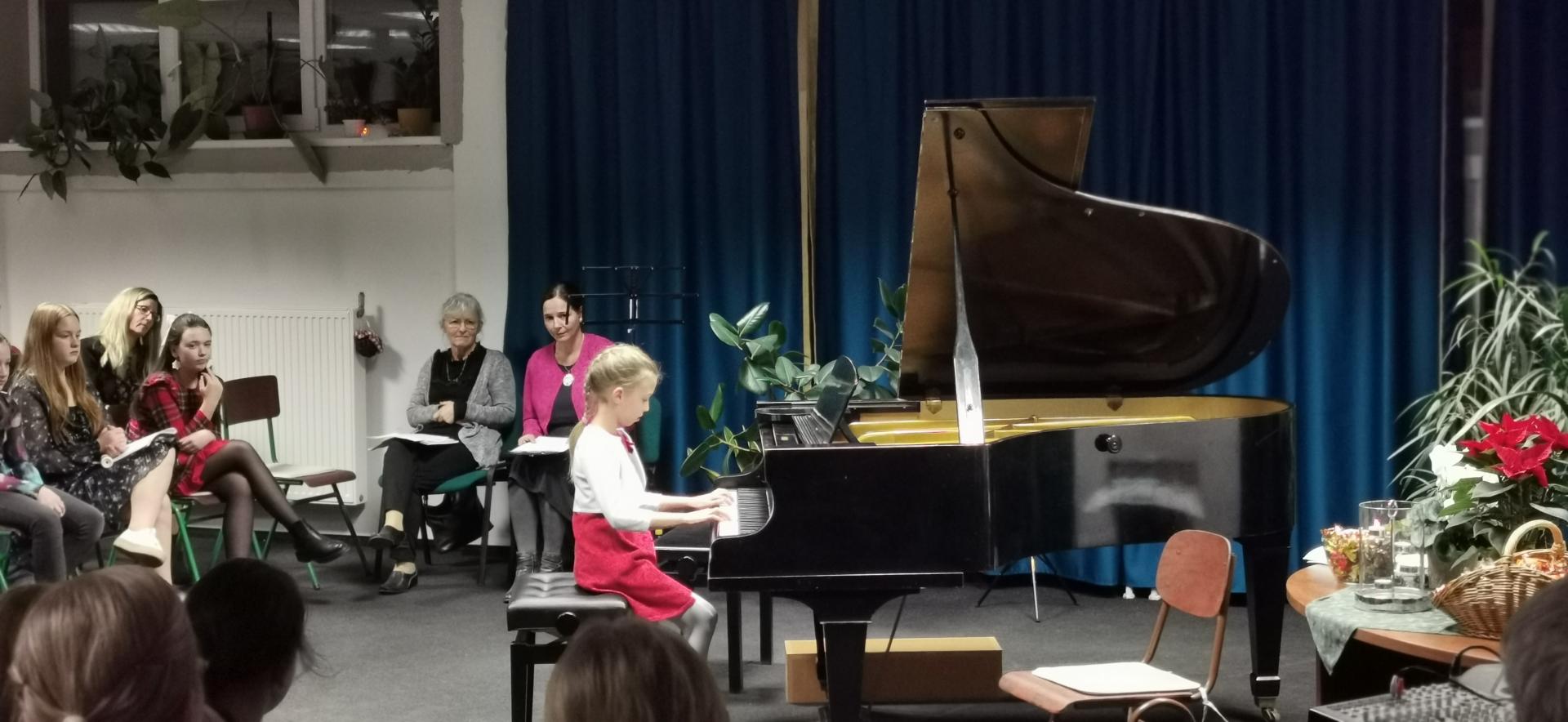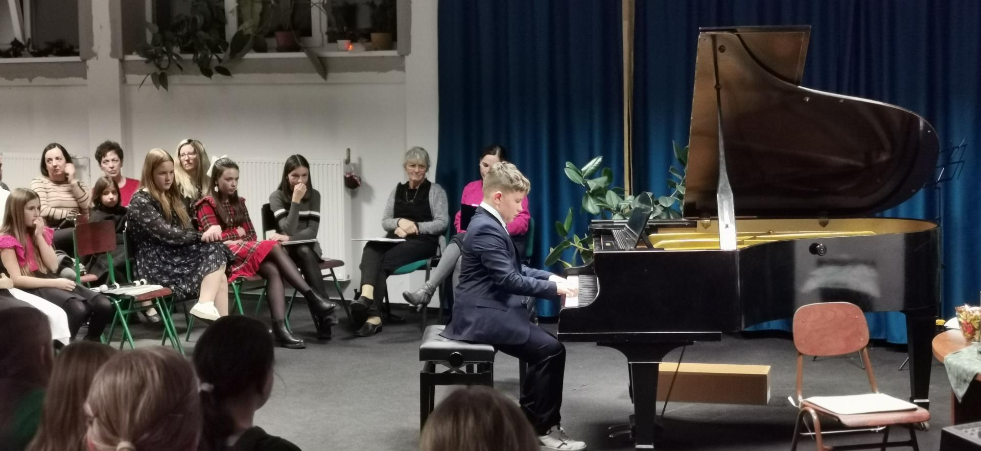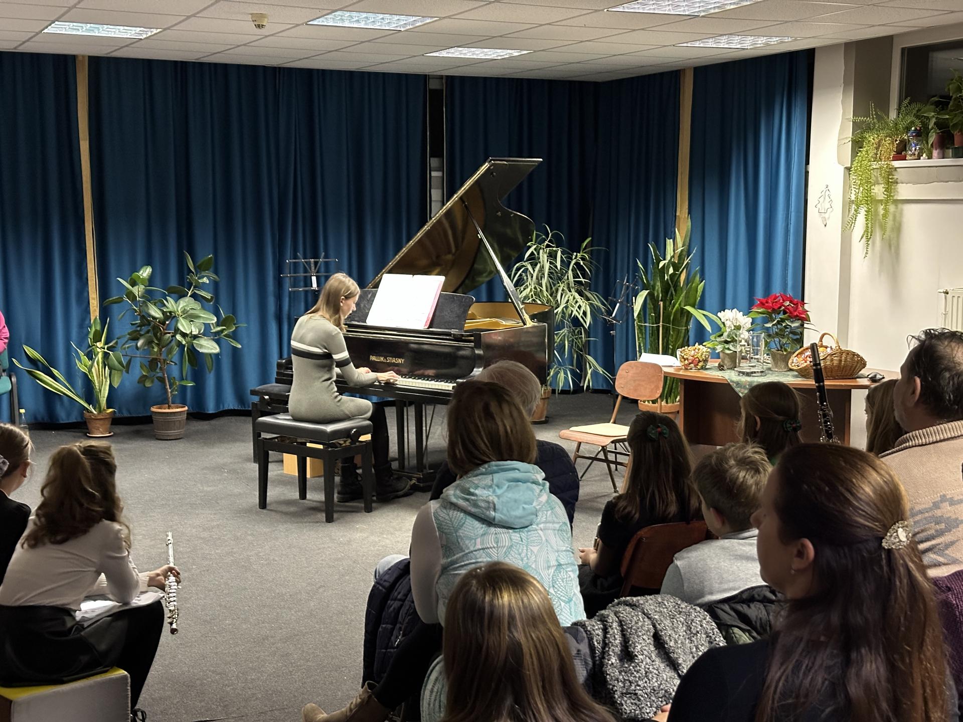 Iskolánk idei adventi növendékhangversenye is nagyszerűen sikerült. A kék szalon megtelt családokkal, akik kíváncsian várták, hogy meghallgassák a gyerekek játékát – sokan közülük most léptek fel először közönség előtt.