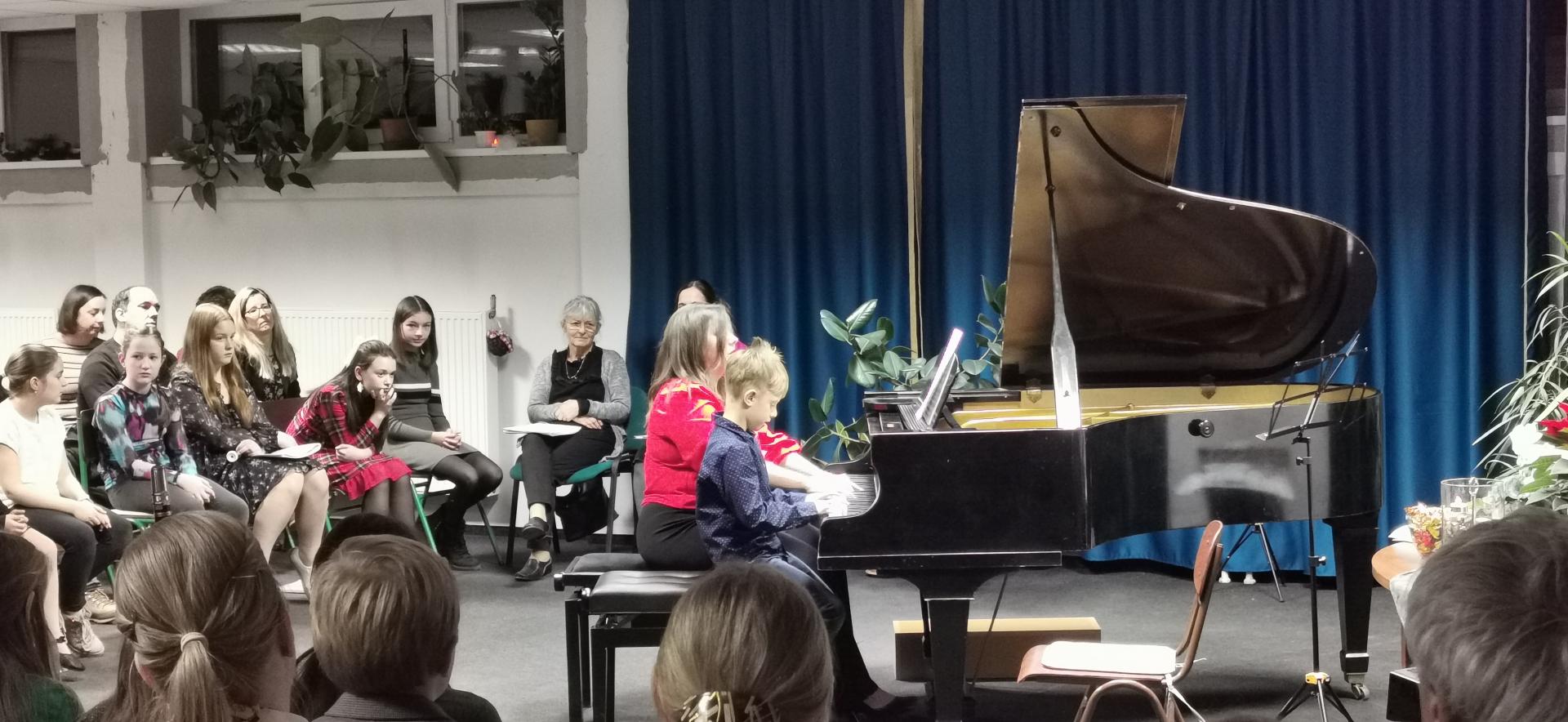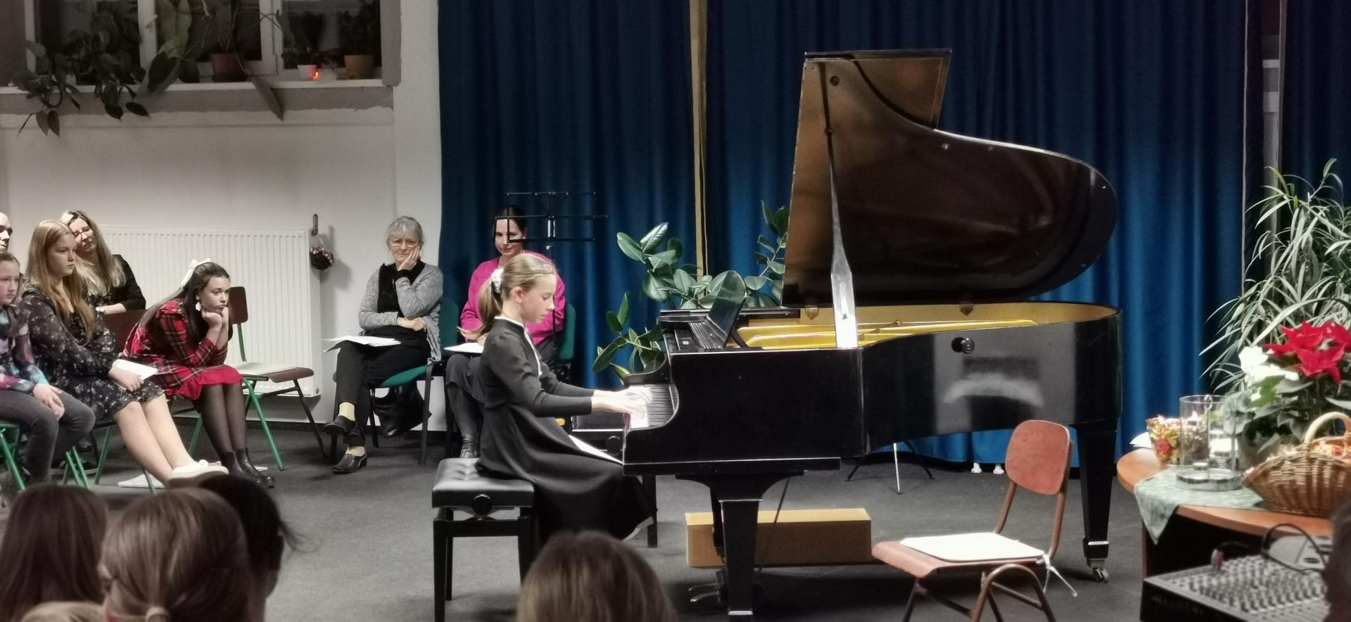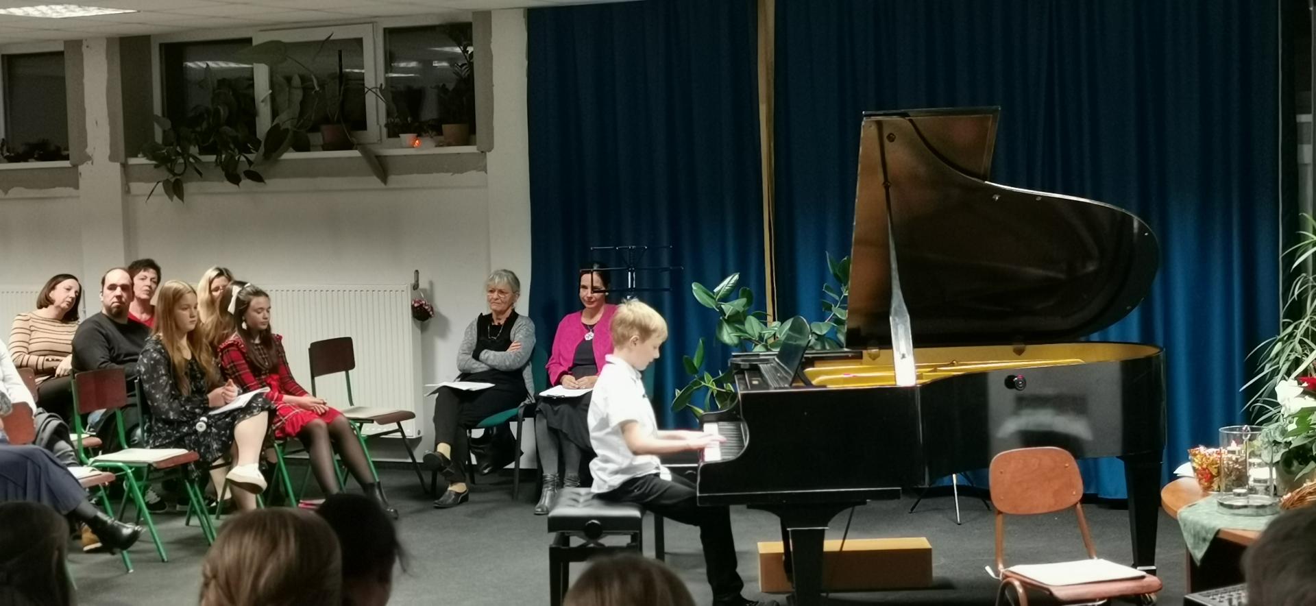 Iskolánk idei adventi növendékhangversenye is nagyszerűen sikerült. A kék szalon megtelt családokkal, akik kíváncsian várták, hogy meghallgassák a gyerekek játékát – sokan közülük most léptek fel először közönség előtt.