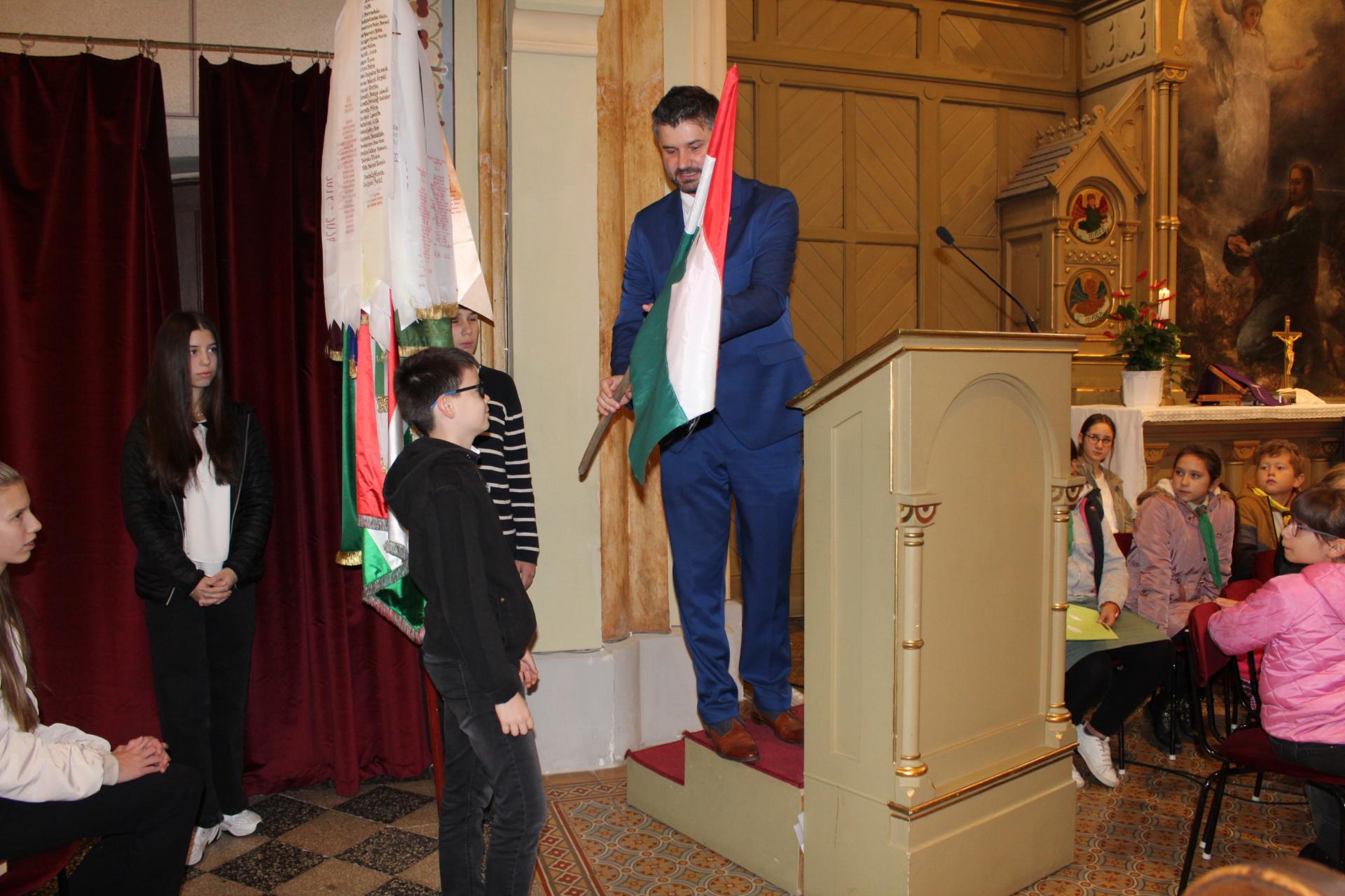 Hétfő reggel ünnepi hangulat lengte be a Szombathelyi Evangélikus Templomot, ahol iskolánk énekkara Bródy János: „Ha én rózsa volnék” című dalának meghitt előadásával nyitotta meg az 1956-os forradalom emlékére rendezett megemlékezést. A dal után Dalos Tibor történelemtanárunk egy rendhagyó, élményszerű tanóra keretében idézte fel a forradalom hősies és megrendítő eseményeit, felvillantva a kor eszméit, küzdelmeit és áldozatait. Az ünnepi műsort énekkarunk felemelő előadása zárta, amikor megszólalt az „Előre mind, pesti srácok” című dal – méltó, lélekemelő lezárásaként az emlékezésnek.
