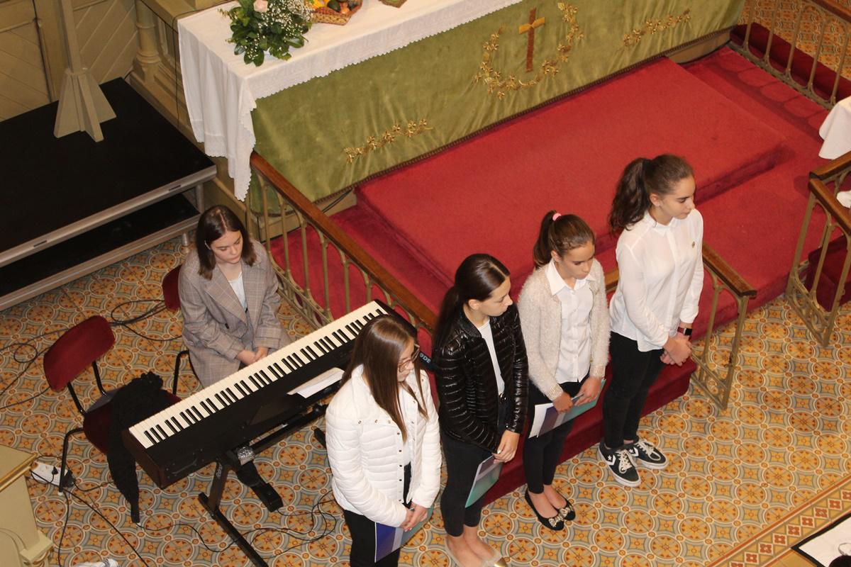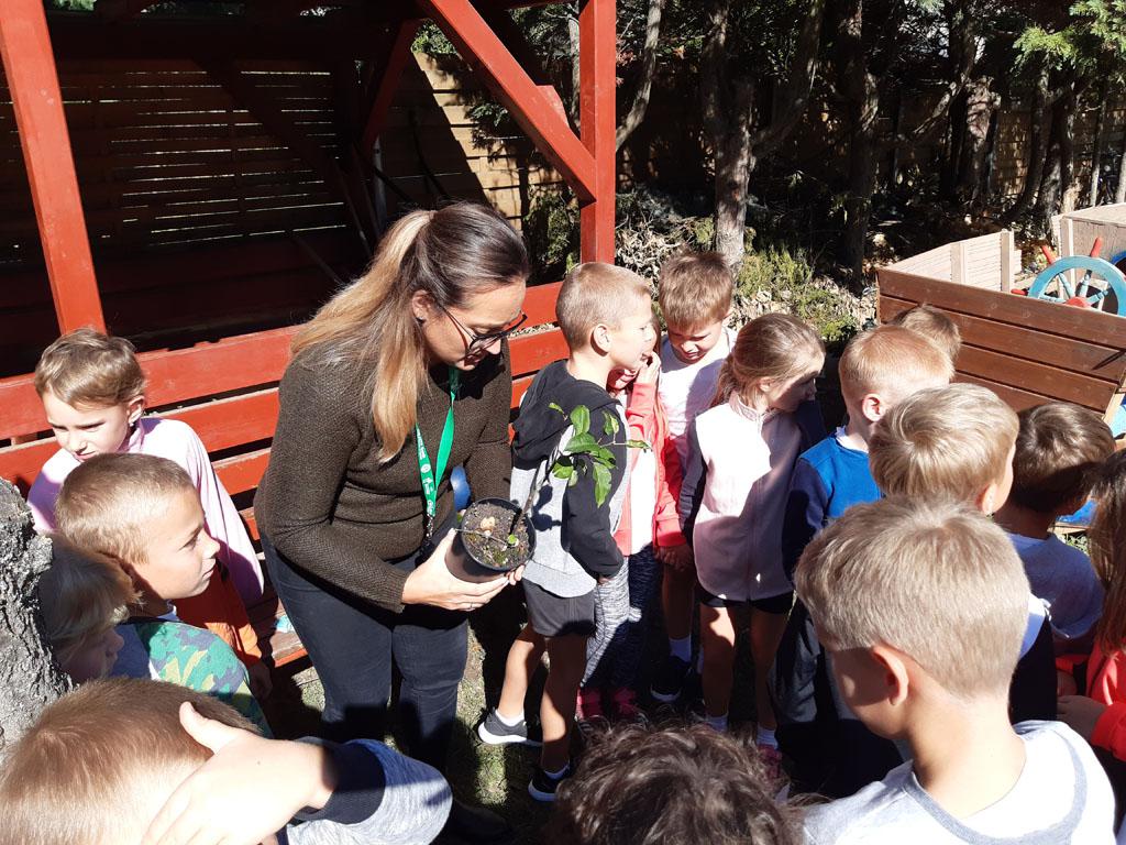 A fenntarthatósági témahét kapcsán pedig egy apró almafát ültettünk el iskolánk udvarán az aradi vértanúk tiszteletére. A fát az 1.b osztályosok helyezték a földbe, majd az 5. és 7. évfolyamosok megemlékeztek az aradi 13 hősi haláláról. A diákok azokat a verseket szavalták el, melyekkel a felvidéki kirándulásra készültek, majd Steindl-Papp Judit lelkésznő imádsággal és áldással zárta a rövid ünnepséget.