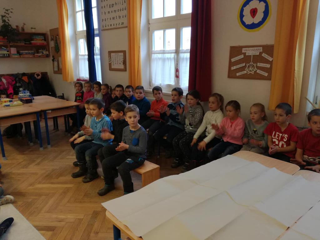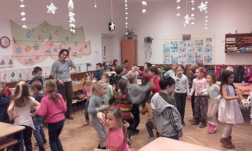 A szünet előtti napokban lelkesen készültek az alsósok a közeledő ünnepekre. Több osztály karácsonyi műsorral készült a szülőknek, a két első osztály pedig közösen karácsonyozott.