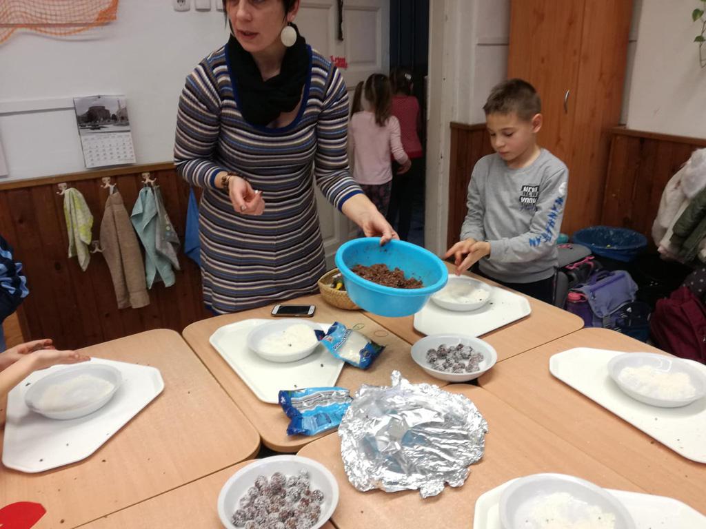 Az éneklés és egymás megajándékozása után a gyerekek mézeskalácsot díszíthettek, kókuszgolyót gyúrhattak, társasjátékozhattak vagy közös plakátot készíthettek. A jó hangulatú délutánt közös játék zárta.