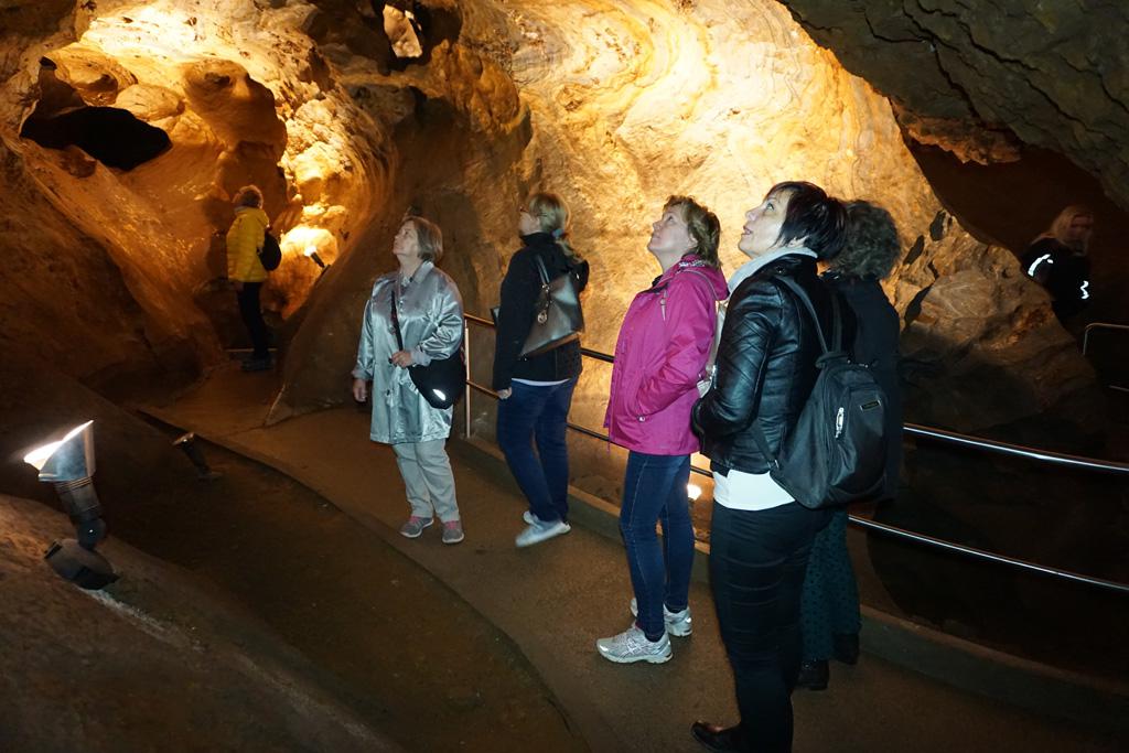 A kirándulás harmadik napján barlangtúrára indultunk. Elsőként a Dobsinai jégbarlangba vezetett utunk, mely hosszúságával és mélységével a legnagyobb jégbarlangok közé tartozik. A jégréteg helyenként eléri a 25 m vastagságot is. Gömör megye legrégebbi műemlékei közé sorolják a csetneki evangélikus templomot, ahol kicsit megállt a csapatunk. Itt található Szlovákia legrégebbi orgonája, emelett különlegessé teszik a templomot a falakat borító falfestmények is. Csetneken megemlékeztünk Gyöngyösi István magyar költőről is, s koszorút helyeztünk el sírján. Délután az Ochtinai-aragonitbarlangba látogattunk el, mely csodálatos látványt tárt elénk. A barlang mennyezetét egyedülálló aragonitkristályok borítják a legkülönbözőbb formákban.