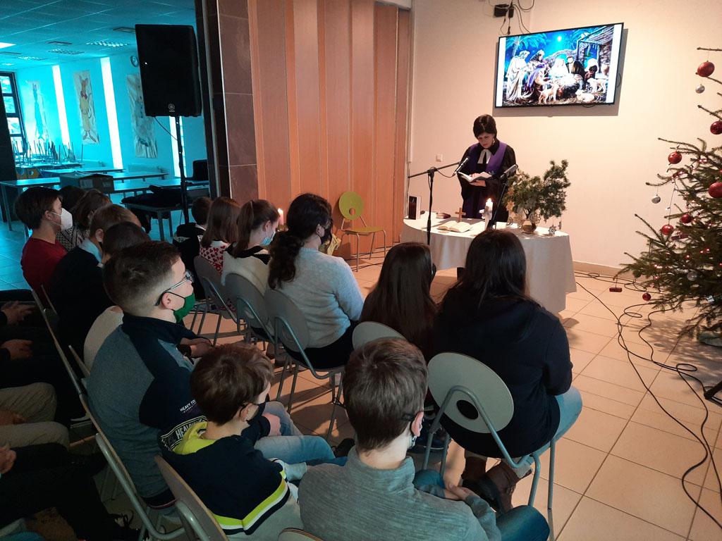 Idén rendhagyó karácsonyi készülődés volt iskolánkban. Évfolyamonként vehettek részt diákjaink ünnepi áhítaton az aulában, ahol Steindl-Papp Judit lelkésznő vezetésével énekeltek karácsonyi énekeket, s versekkel emlékeztek Balogh József tanár úrra.