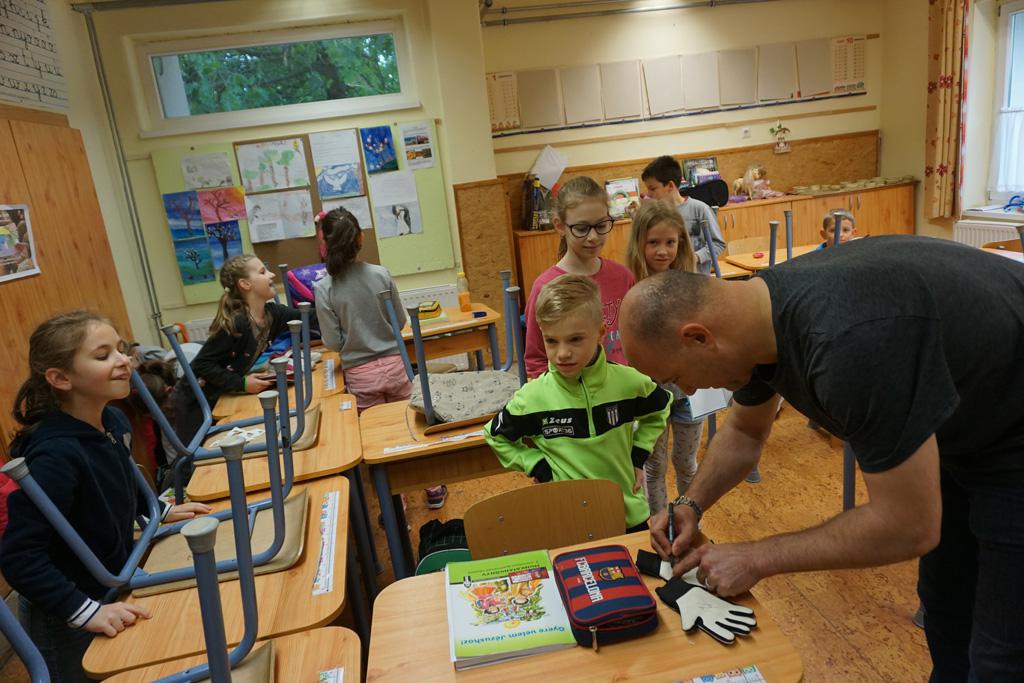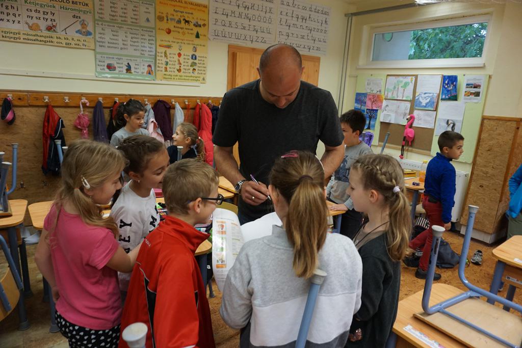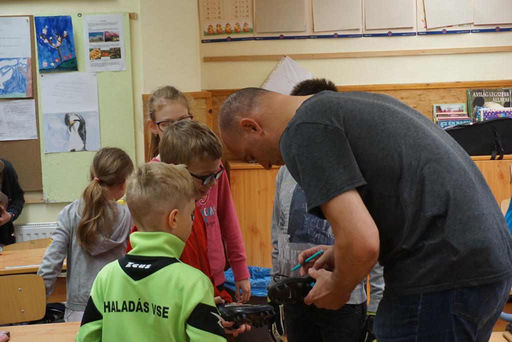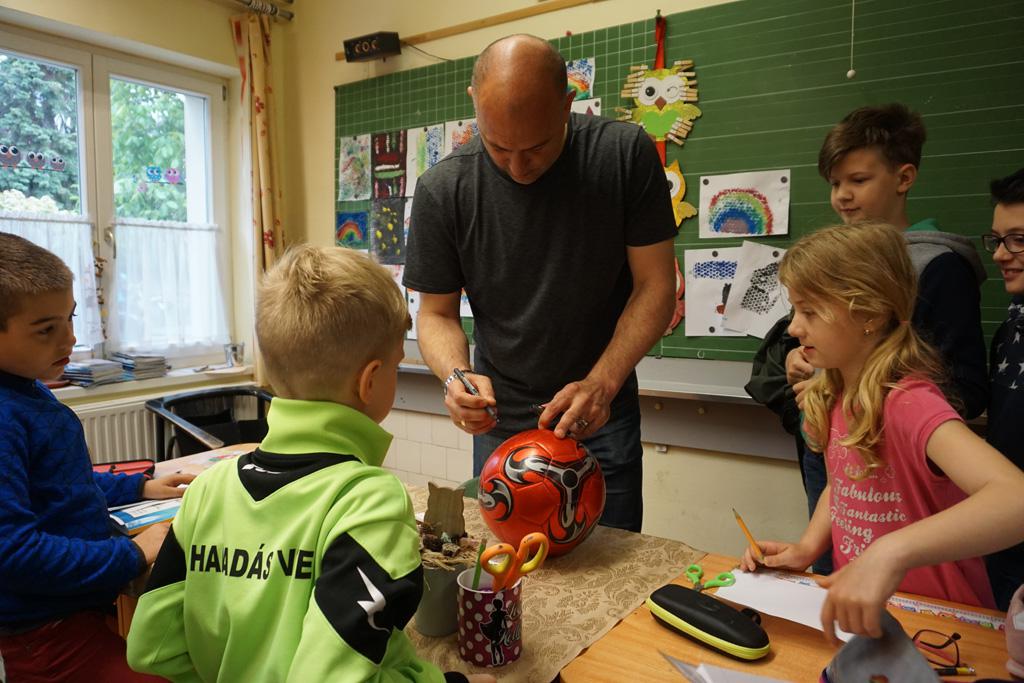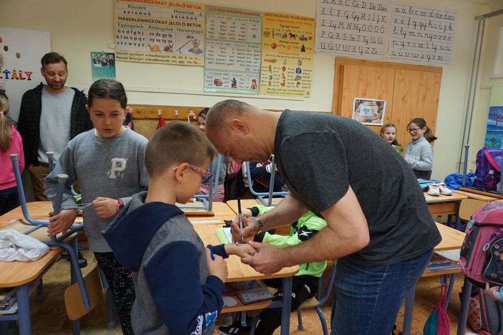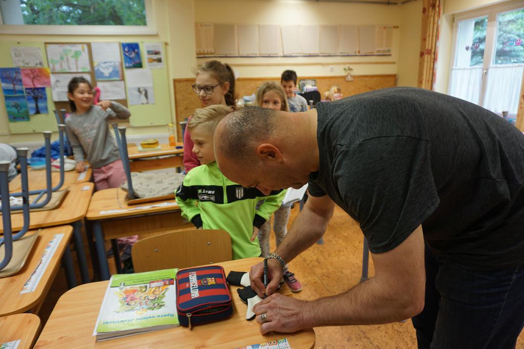 Nagy izgalom lett úrrá egy kedd reggelen iskolánkban. Gyorsan terjedt a hír, Sipi Barnit Király Gábor hozta az iskolába. Háztól házig tartott a fuvar. A Haladás nemrég visszavonult kapusa segített előkészülni a kisdiáknak, majd egy rövid beszélgetés után aláírta Barnika kapus kesztyűjét, s autogramot osztott az időközben összegyűlt iskolatársaknak is.