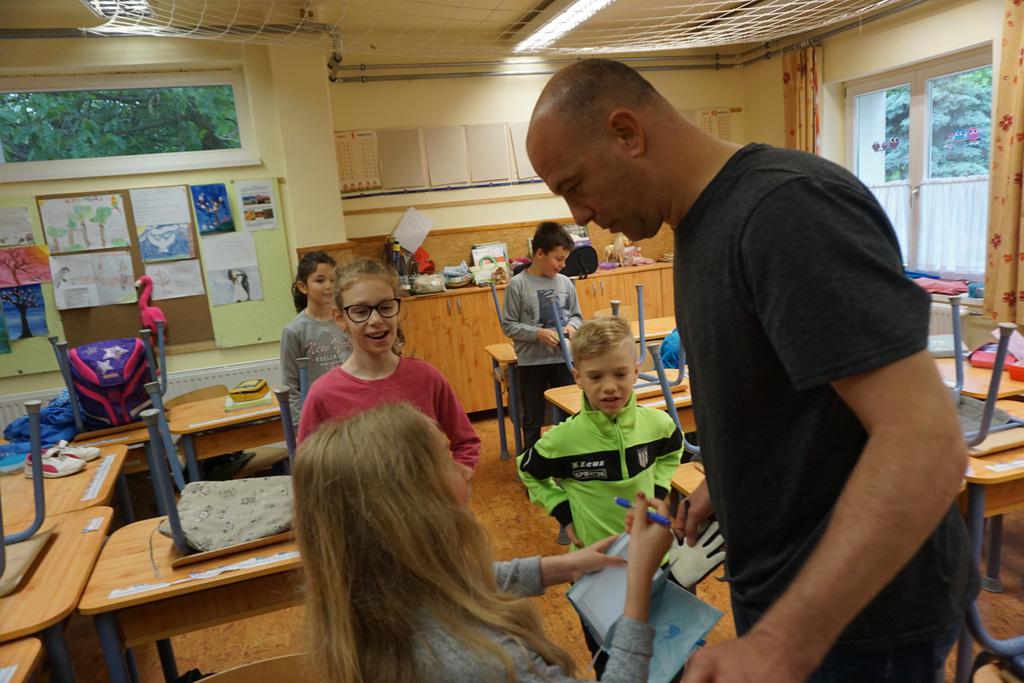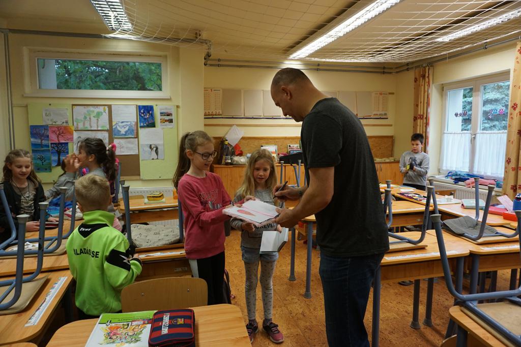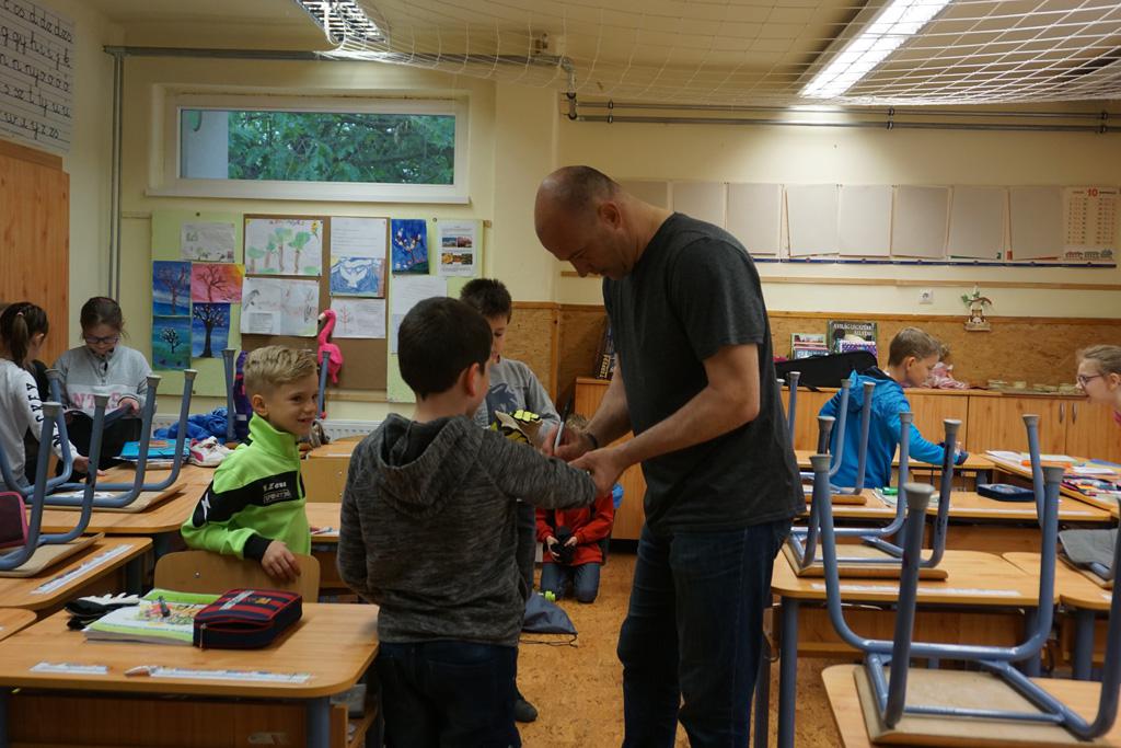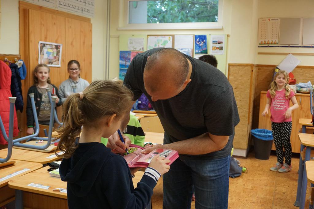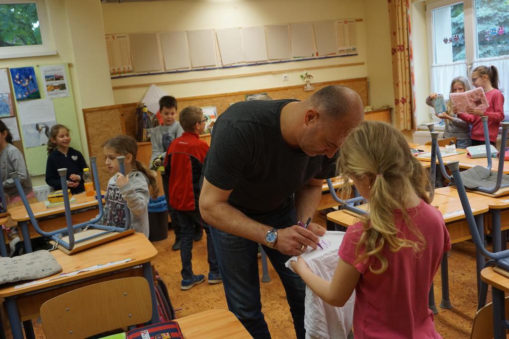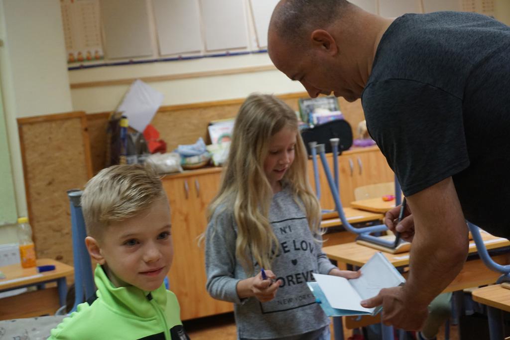 Nagy izgalom lett úrrá egy kedd reggelen iskolánkban. Gyorsan terjedt a hír, Sipi Barnit Király Gábor hozta az iskolába. Háztól házig tartott a fuvar. A Haladás nemrég visszavonult kapusa segített előkészülni a kisdiáknak, majd egy rövid beszélgetés után aláírta Barnika kapus kesztyűjét, s autogramot osztott az időközben összegyűlt iskolatársaknak is.