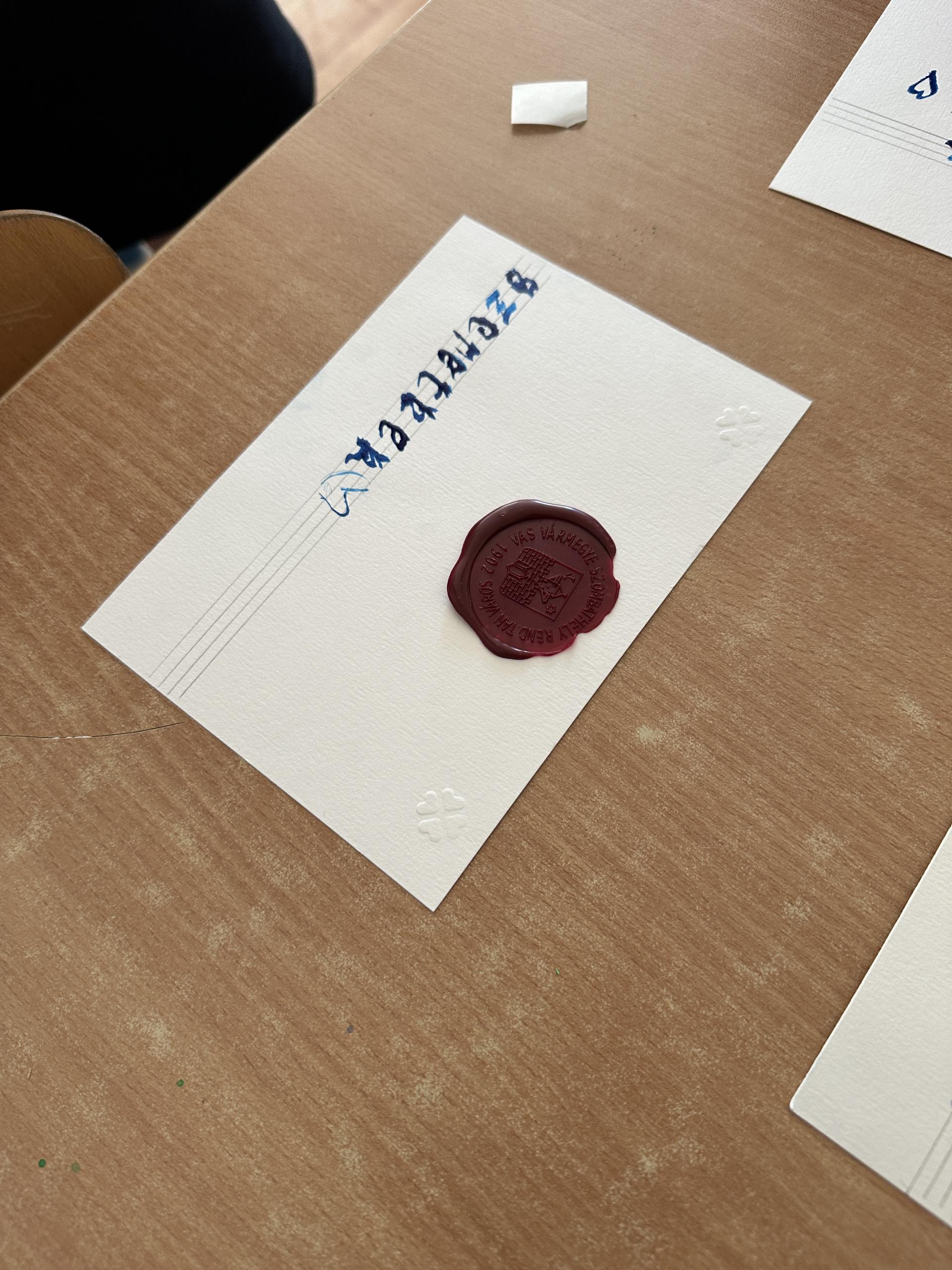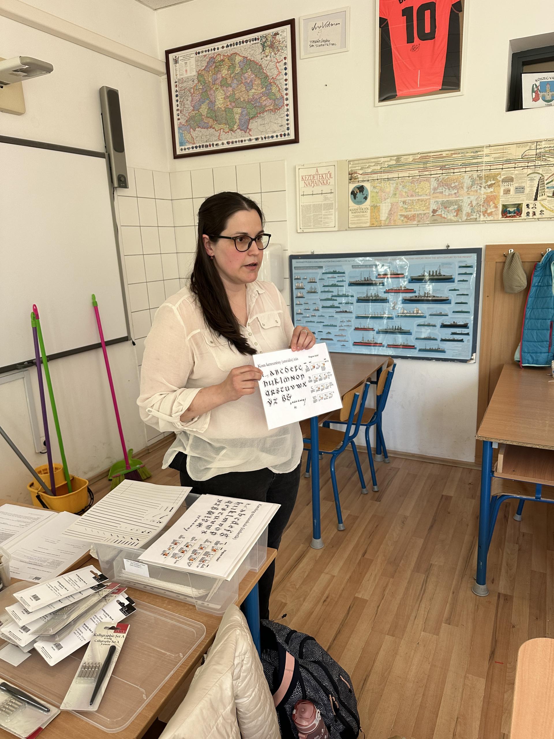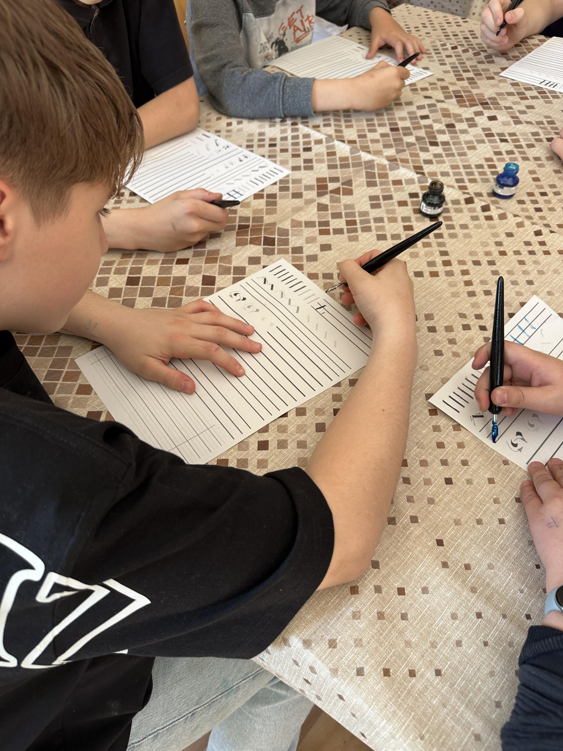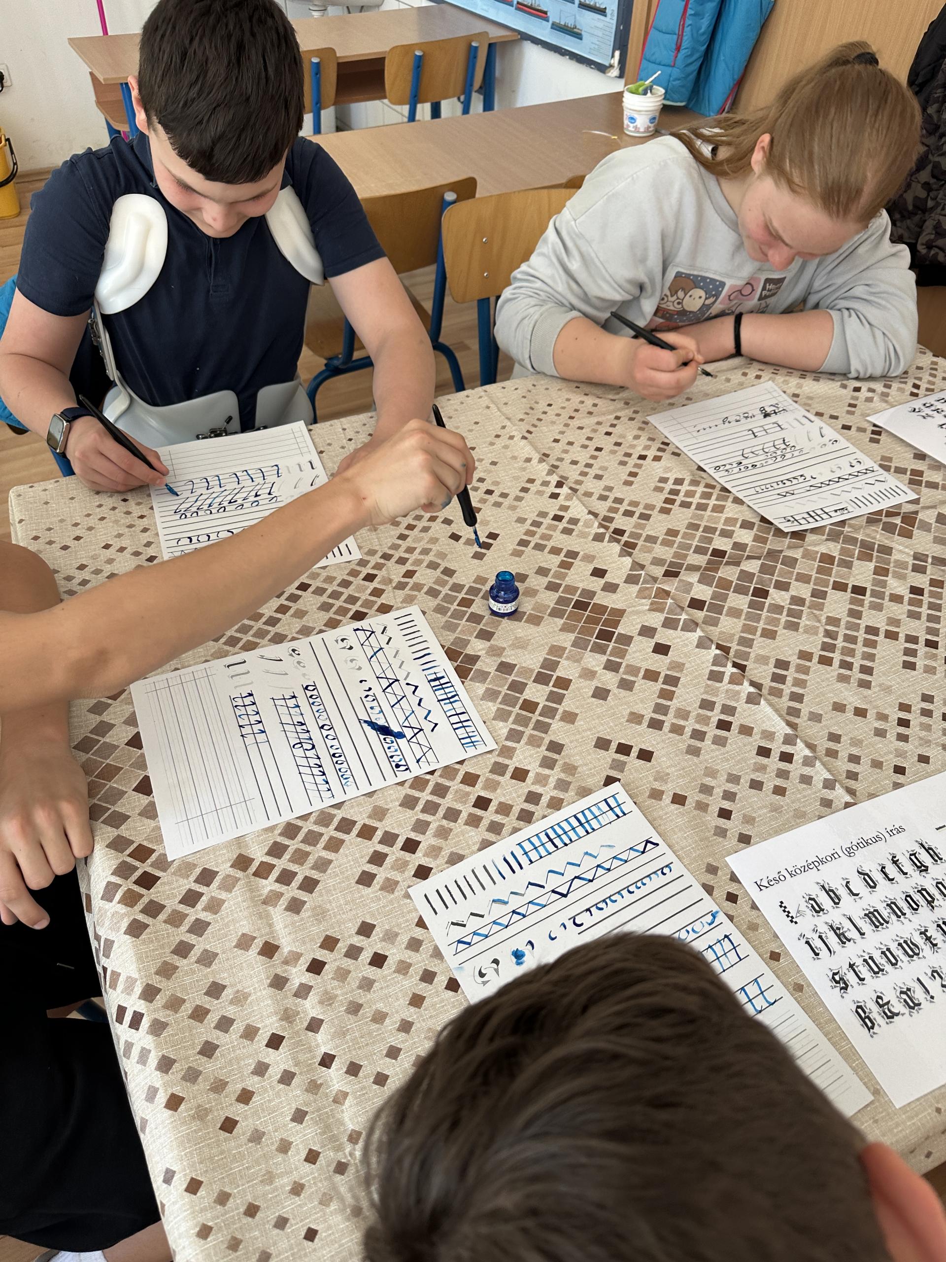 A foglalkozáson diákjaink a paleográfia, vagyis a régi írások olvasásának és értelmezésének izgalmas világába nyerhettek betekintést. A program során a tanulók megismerkedhettek a középkori betűírás sajátosságaival, kipróbálhatták, hogyan formálták egykor a betűket, és megtapasztalhatták, mennyi türelemre, figyelemre és kézügyességre volt szükség egy-egy szöveg elkészítéséhez. A rendhagyó órát Kovács Eszter, az MNL Vas Vármegyei Levéltár főlevéltárosa tartotta, aki szakmai tudásával és közvetlen stílusával még közelebb hozta a diákokhoz a múlt írott emlékeit. A program végén minden diák hazavihette saját, középkori ihletésű alkotását.