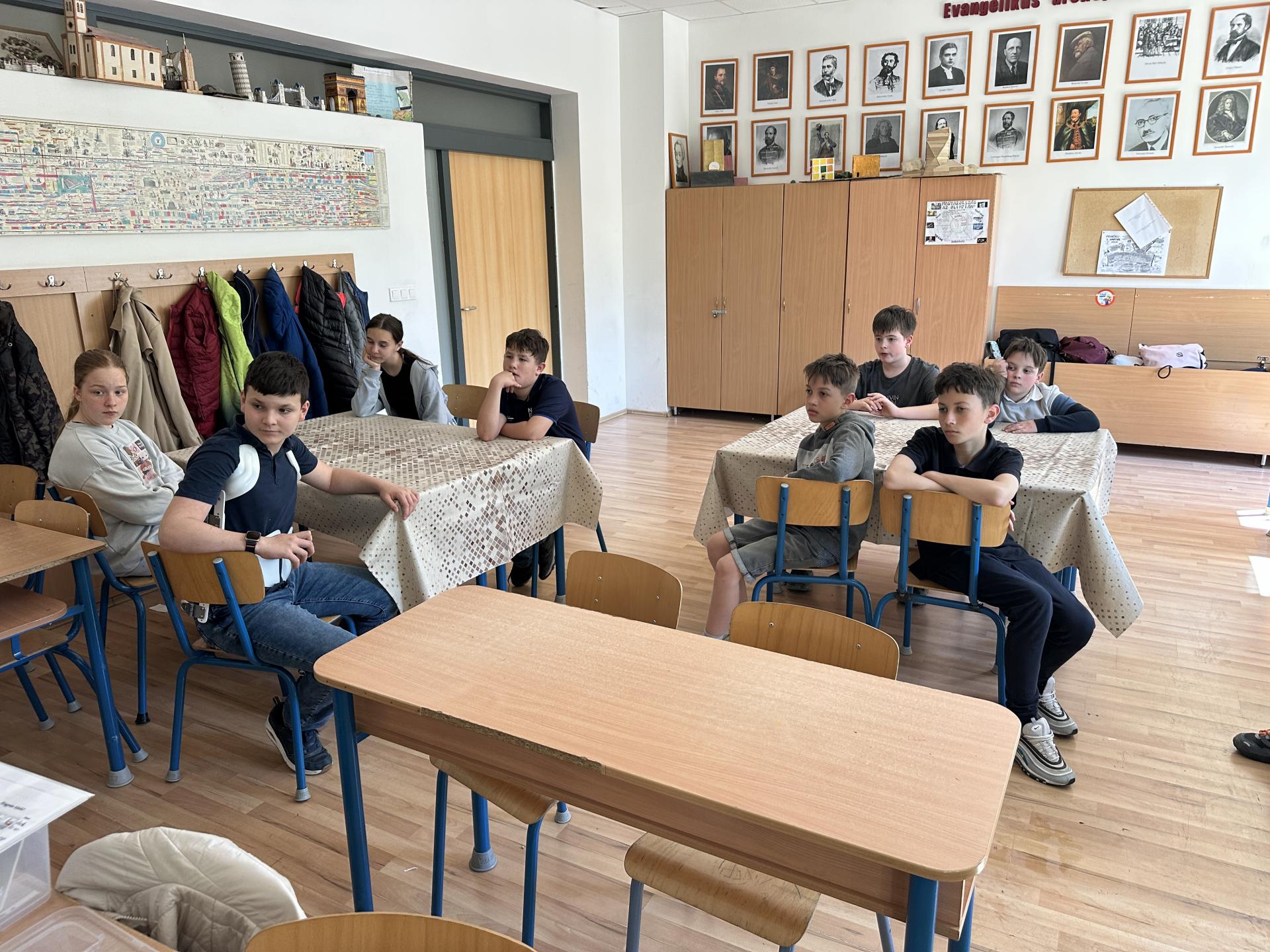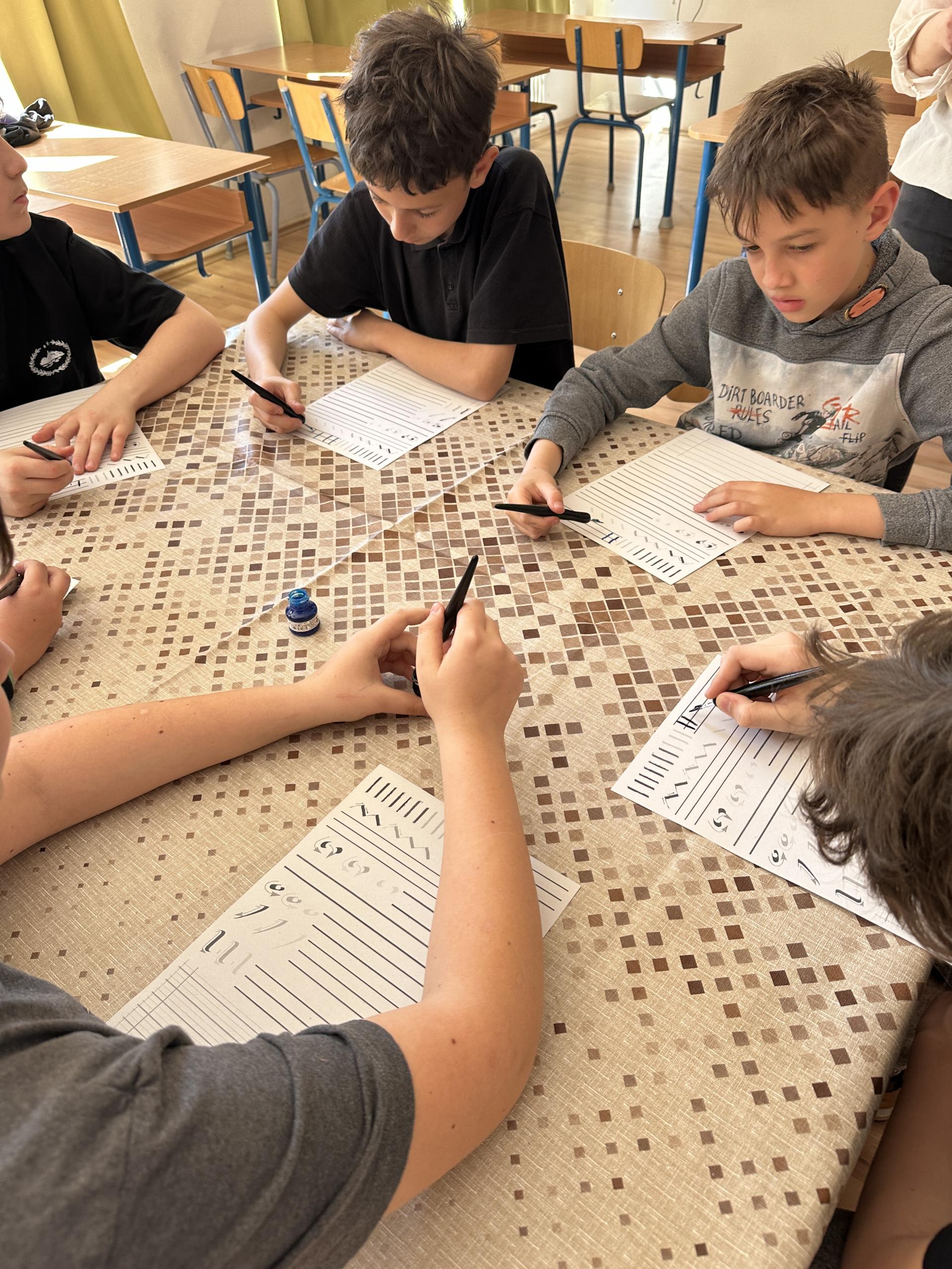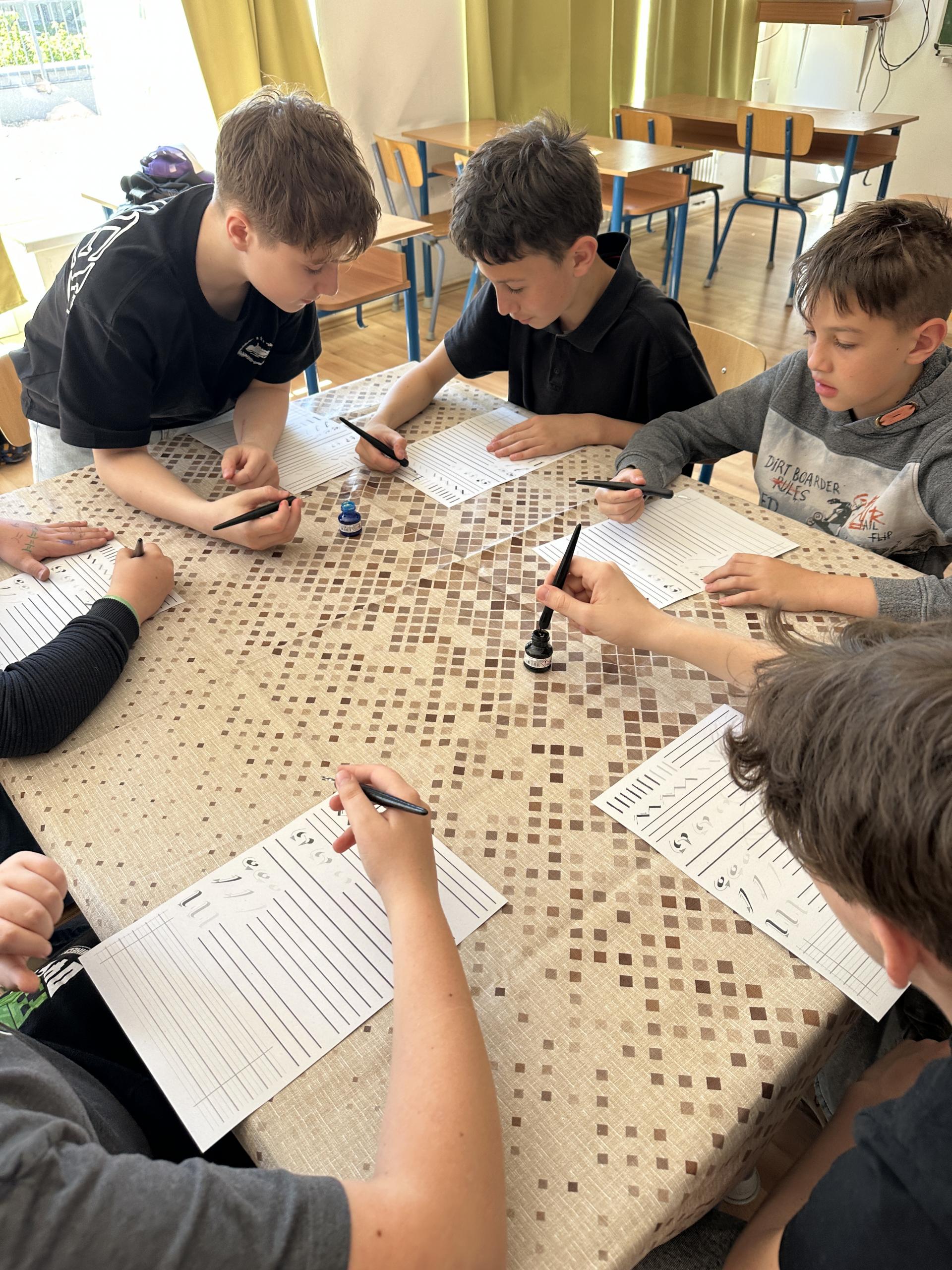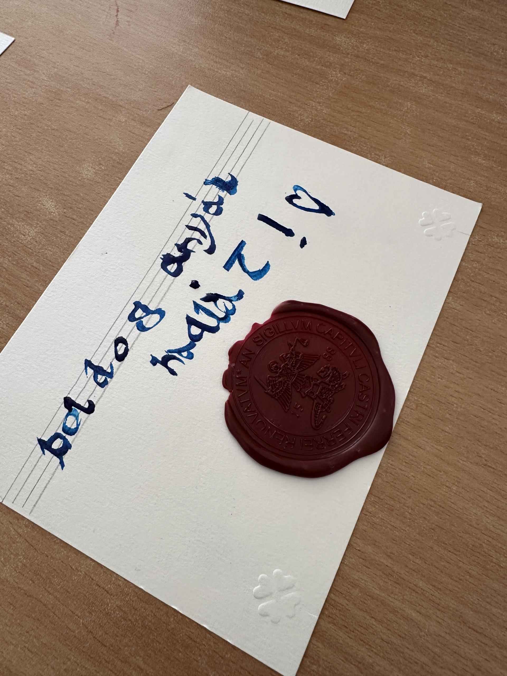 A foglalkozáson diákjaink a paleográfia, vagyis a régi írások olvasásának és értelmezésének izgalmas világába nyerhettek betekintést. A program során a tanulók megismerkedhettek a középkori betűírás sajátosságaival, kipróbálhatták, hogyan formálták egykor a betűket, és megtapasztalhatták, mennyi türelemre, figyelemre és kézügyességre volt szükség egy-egy szöveg elkészítéséhez. A rendhagyó órát Kovács Eszter, az MNL Vas Vármegyei Levéltár főlevéltárosa tartotta, aki szakmai tudásával és közvetlen stílusával még közelebb hozta a diákokhoz a múlt írott emlékeit. A program végén minden diák hazavihette saját, középkori ihletésű alkotását.