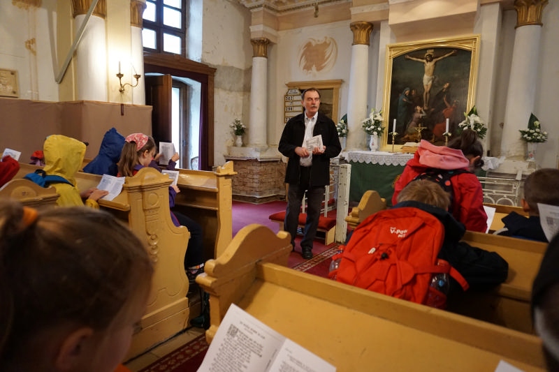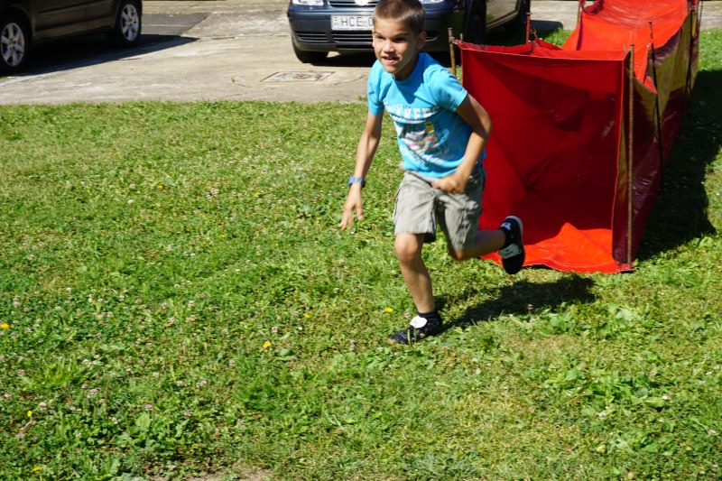 Esős napra ébredtünk, így nagy hőstettet hajtottunk végre, mikor elindultunk Sárvárra kirándulni - ezúttal vonattal. Elsőként a mentőállomást néztük meg. Ott nagyon látványos bemutatóval fogadtak bennünket. Patrik, alias Boldizsár hadirokkantként került a mentőkocsiba, de természetesen mindenki kipróbálhatta, milyen a mentőben ülni sofőrként, vagy betegként. Ezután meglátogattuk az evangélikus templomot. Ázott verébseregként érkeztünk meg, így elsőként megszárítkoztunk az egyházközség gyülekezeti termében, ahol lelkész úr érdekes előadását hallgathattuk meg. Ezt követően az evangélikus templom történetét is megismerhettük. Túránk során még benéztük a várudvarba, majd a vasútállomás felé vettük az irányt. Kicsit korábban mint terveztük, de a szülők segítségével hamar visszaértünk az iskolába, ahol még játszhattak a táborozók.