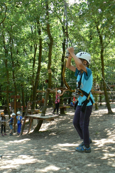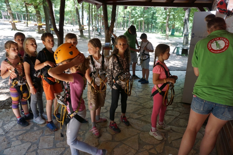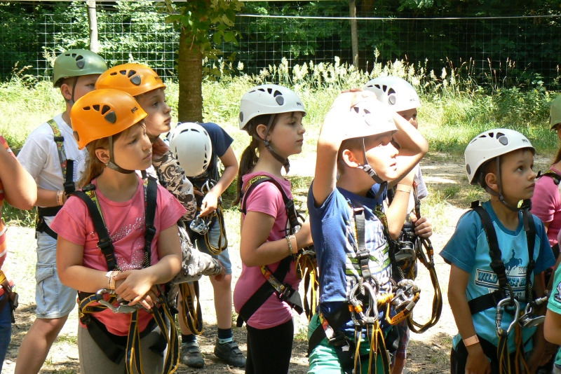 Hosszú túrára indult a kreszes csapat csütörtökön. A reggeli bemelegítő körök után a Holdfényliget felé vettük az irányt. Első körben azonban csak az utca végéig jutottunk, ott kis technikai hiba akadt, így vissza kellett fordulnunk. A suliban Béla bácsi gyorsan orvosolta a bűnös biciklik problémáit, hogy minél előbb útnak indulhassunk. A Gyöngyösfaluba vezető úton három szülő kísért minket, közülük ketten autóval, ha probléma adódna gyorsan cselekedhessünk. Erre azonban nem volt szükség, de azért nagy könnyebbség volt, hogy a csomagjaink a kocsikban utazhattak. A Holdfényligetbe érve a gyerekek izgatottan várták, hogy kipróbálhassák a kötélpályát. Rövid gyorstalpaló és egy pizza után már Maugliként csüngtek a köteleken. Hősiesen küzdötték végig magukat az akadályokon.
