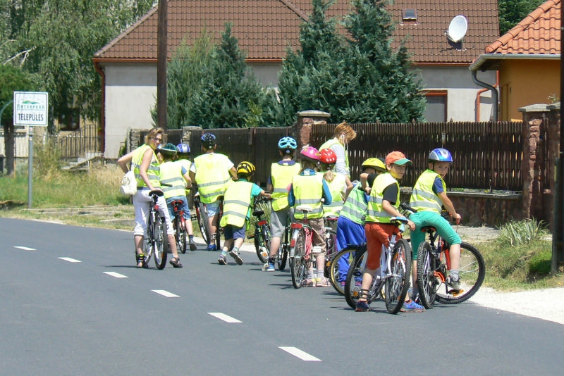 A sárvári gyalogtúra után ezen a napon ismét kerékpárral vettük nyakunkba a várost. Elsőként az Erdészeti Központba látogattunk el (Olad-körgyűrű irányba), majd visszakerekeztünk a belvárosba egy finom palacsinta lakomára. Innen moziba mentünk, ahol a Végre otthon animációs filmnek köszönhetően megtudhattuk, hogy az autók szörppel táplálva repülni is képesek :-) Mozi után a KRESZ park felé vettük az irányt. Itt gyakorolhatták a gyerekek a közúti közlekedést. A szabálytalankodókat pedig a rendőrök okították a helyes közlekedésre.