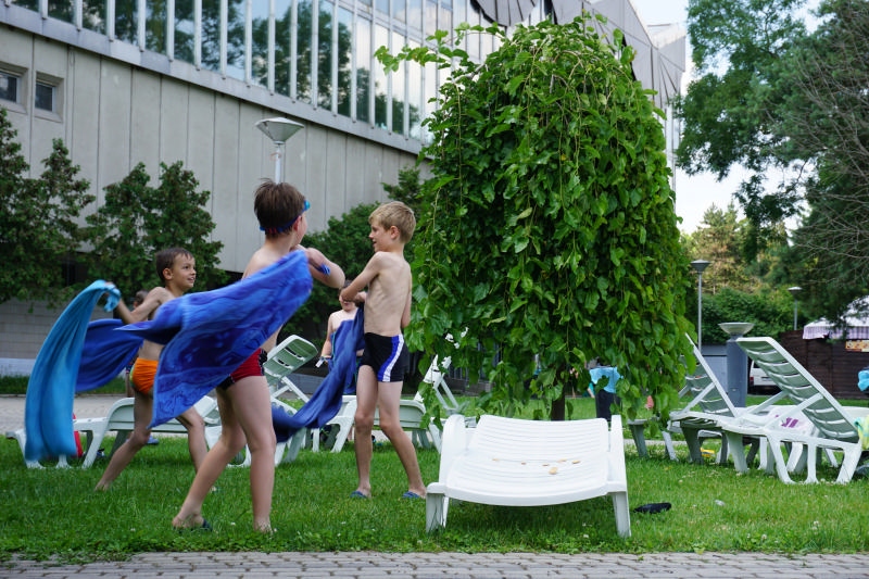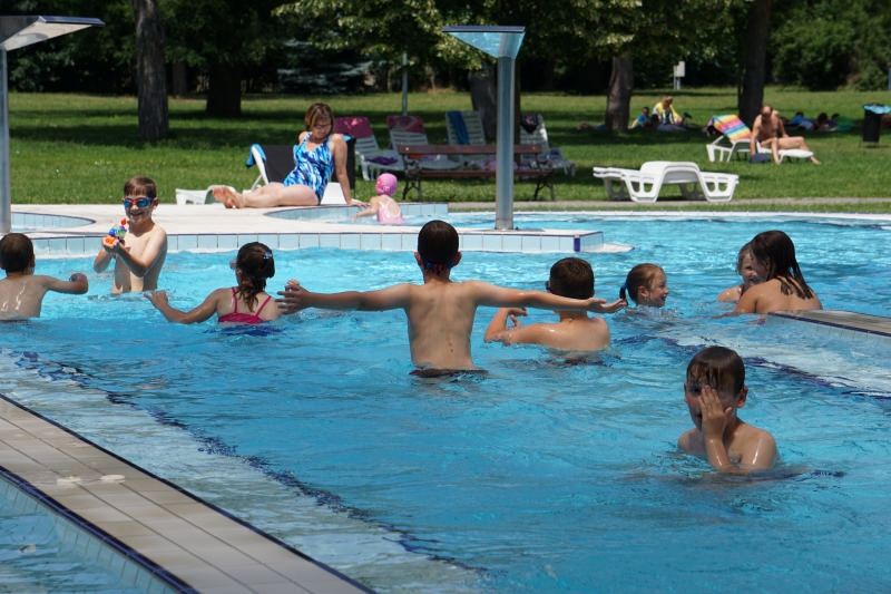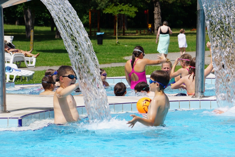 A tábor zárónapján elsőként megköszöntöttük szülinaposunkat, Patrikot (tényleg Patrikot) :-) majd a tűzoltóság felé vettük az irányt. Itt jót játszottak a gyerekek. Ezután elkerékpároztunk a fitness-parkba. Itt is mindenki megtalálta a kedvére való elfoglaltságot, ki kerékpározott, ki pedig az eszközöket próbálta sorra. Persze voltak olyanok is, akik inkább rápihentek a délutánra. Ebéd után a termál fürdőben zártuk a hetet.
