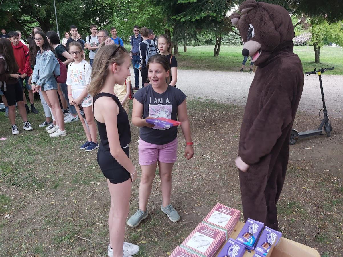 A megmérettetés helyszíne a Csónakázó-tó szigete és környéke volt. Három órán keresztül oldottak meg a csapatok érdekes és fejtörő matematika feladatokat miközben bejárták a szigetet. A versenyt nehezítette a nagy meleg, melyet szerencsére csak a verseny végére, de felváltott az eső. Ennek ellenére az eredmények nem maradtak el. A versenyben a megtett métereket is számolták, külön díjazásban részesítették a feladatok megoldása közben a legtöbbet sétáló fiatalokat. Iskolánk egyik csapata - Makkos Hanna, Faragó Réka, Nagy Júlia - a medvebocs kategóriában e versenyben is díjat nyert, a legtöbb métert megtett medvebocs csapat lett. Matematika területén pedig - Szitár Ádám, Módly Samu, Berta Péter - csapatunk arany, a többi csapatunk ezüst értékelést szerzett.