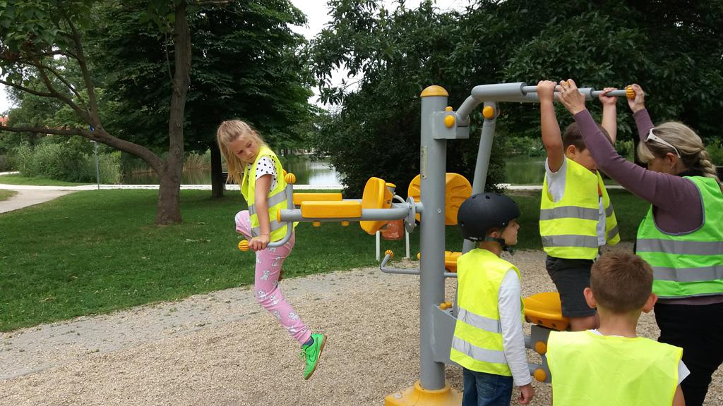 A lelkes kresz-es gyerekekkel délelőtt a kerékpározás alapszabályait néztük át, majd a gyakorlatban is kipróbáltuk ezeket. Délutáni pihenőt a Kalandvárosban töltöttük.