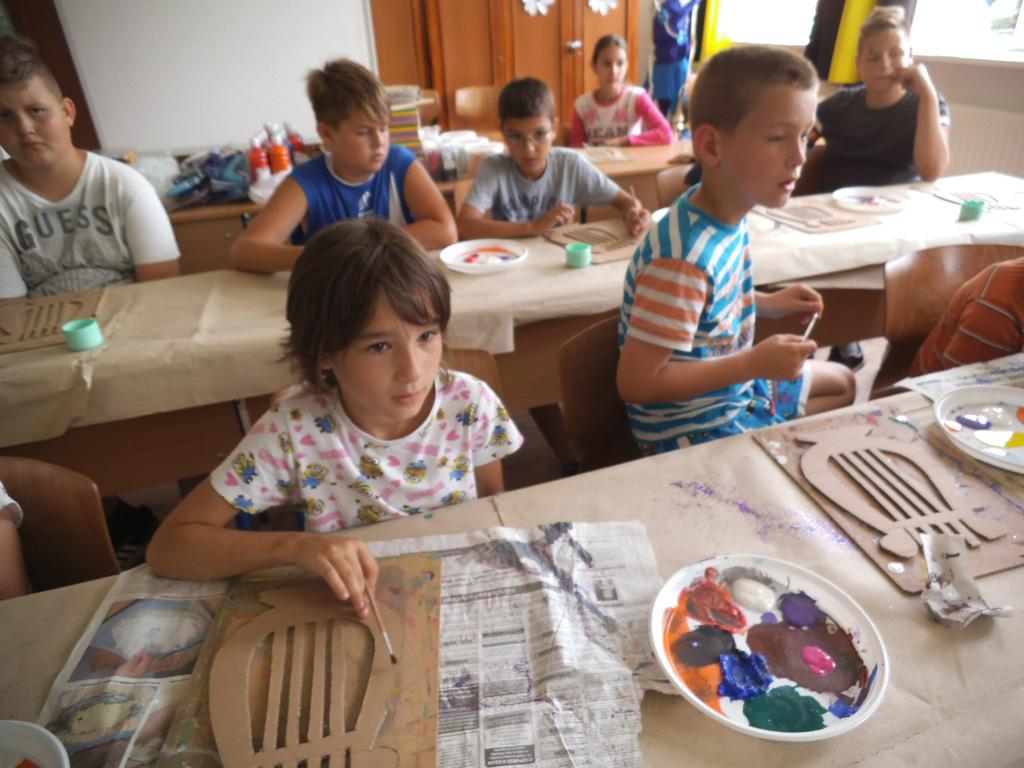 Hétfőtől péntekig 4 témakörben valósulnak meg a programok mind a két héten. 1.Önismeret, közösségépítés: „Mert nem az a fontos, amit lát az ember. Az ember azt nézi, ami a szeme előtt van, de az ÚR azt nézi, ami a szívben van.” /1Sám 16,7/ 2. Művészeti nevelés: „Keressetek hát nekem egy embert, aki szépen tud játszani a lanton, és hozzátok ide hozzám!” /1Sám 16,17/ 3. Sport: „ . . . azt mondta neked az ÚR, hogy kezedbe adja ellenségedet. Tégy vele, amit jónak látsz!” /1Sám 24,5a/ 4. Környezettudatosság: „Miért vetetted hát meg az ÚR szavát, miért tettél olyat, ami nem tetszik neki?!” /2 Sám 12,8b-9a/ A bőséges reggelit áhítat követi, majd a táborozók részére önismereti foglalkozás következik. Utána tízórai, majd 3 db 15 fős csoportban folytatódik a délelőtt forgószínpad szerűen. Közben természetesen szakítunk időt az ebédre egy kis játékos kikapcsolódásra. A nap végén röviden összefoglaljuk a tanultakat, hallottakat. Természetesen a hálaadó ima sem maradhat el. Hétfőn: Önismereti játékok segítségével a "Milyen vagyok?" kérdésre kerestük a választ. Kinder+Sport sorversenyek várták a gyerekeket. Megismerkedhettek a művészeti foglalkozás keretében a lyrával és sablon segítségével el is készíthették a saját hangszerüket. Újrahasznosítás és környezetünk szépítése kapcsán "fűmanót" készíthettek. De beszéljenek a hétfői foglalkozásokról a fotók.