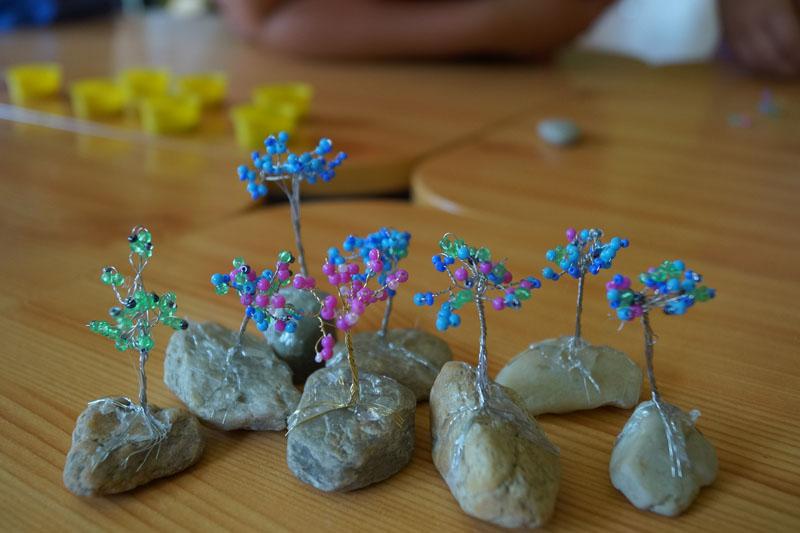 A tábor negyedik napján mindenkinek meg kellett találnia a számára legszebb követ, majd gyöngyfát készítettünk drótból, gyöngyökből. A bütykörészés mindenkinek nagyon jól ment, volt, akinek kezei közül több fa is megszületett. A délelőtt második felében rajzversenyre invitáluk a gyerekeket, a téma , természetesen, a könyv volt. Így születtek könyvvárosok, könyvházak, könyvkávézó, könyviskola, könyvkutya, aki könyvet eszik stb. A délutánt a Kalandvárosban töltöttük.