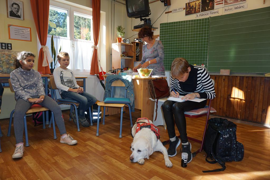 Rendhagyó magyar órán vehettek részt a 4.b-s diákok. Horváth Niki és kutyája volt az óra vendége.